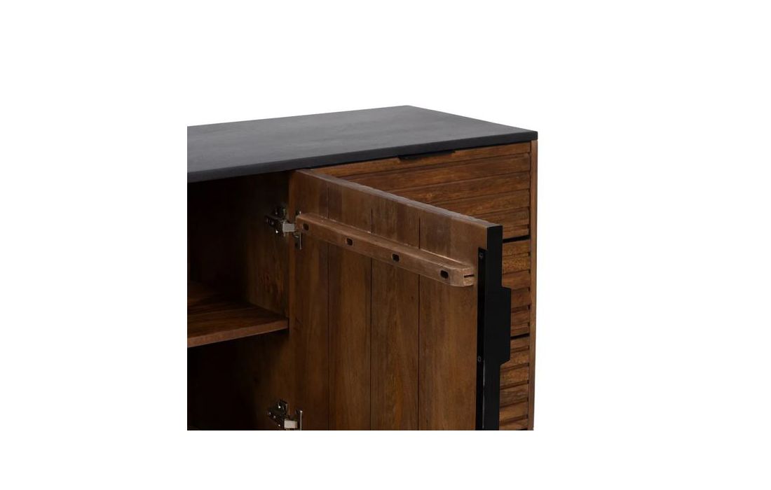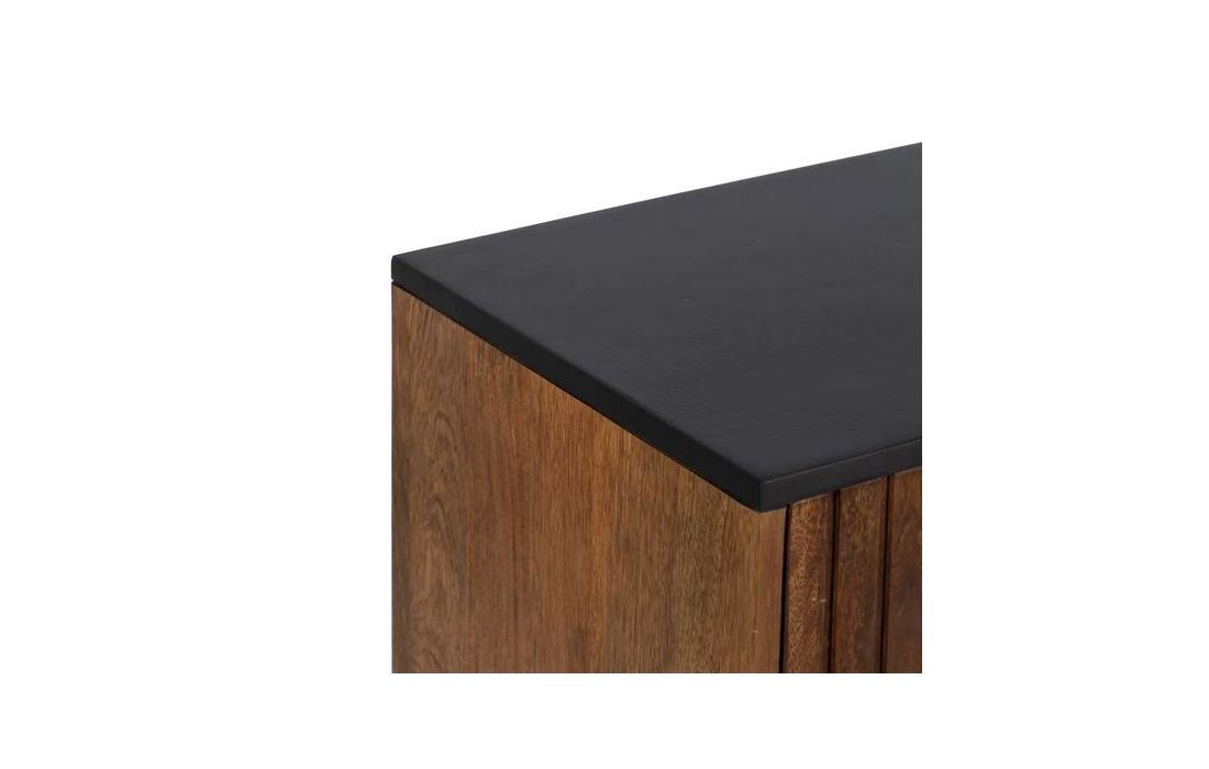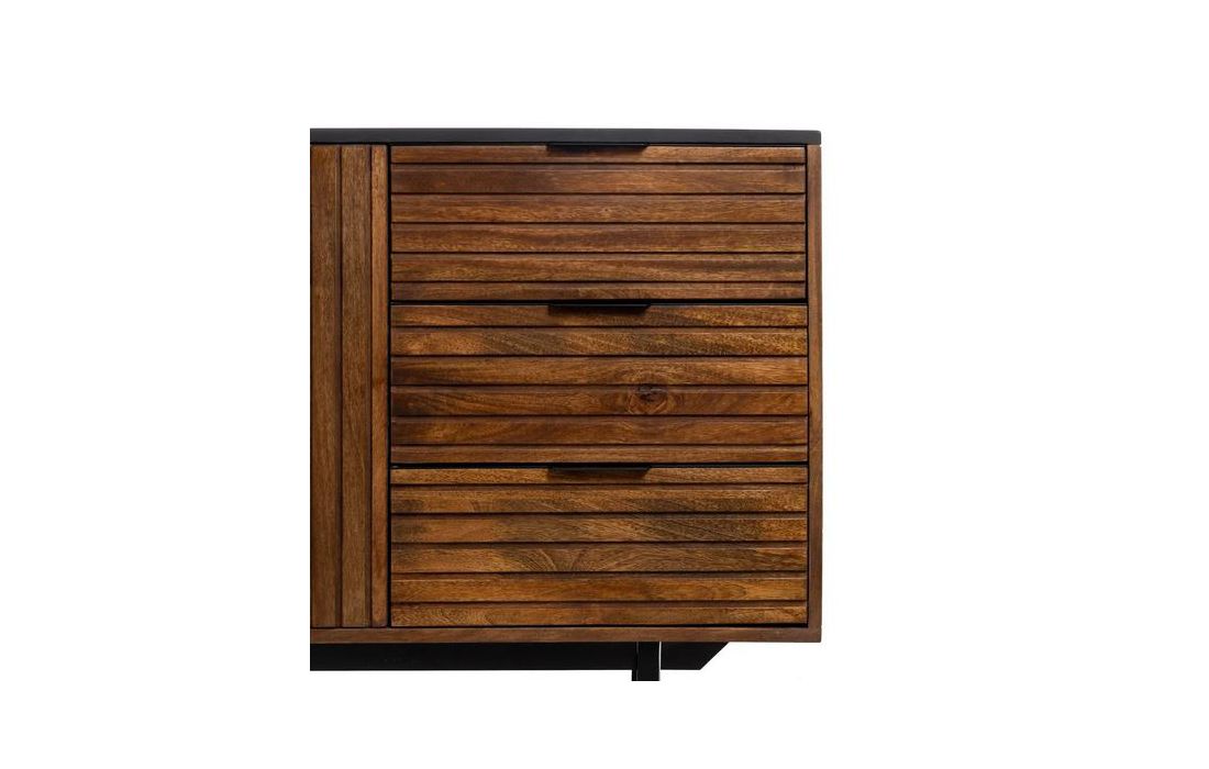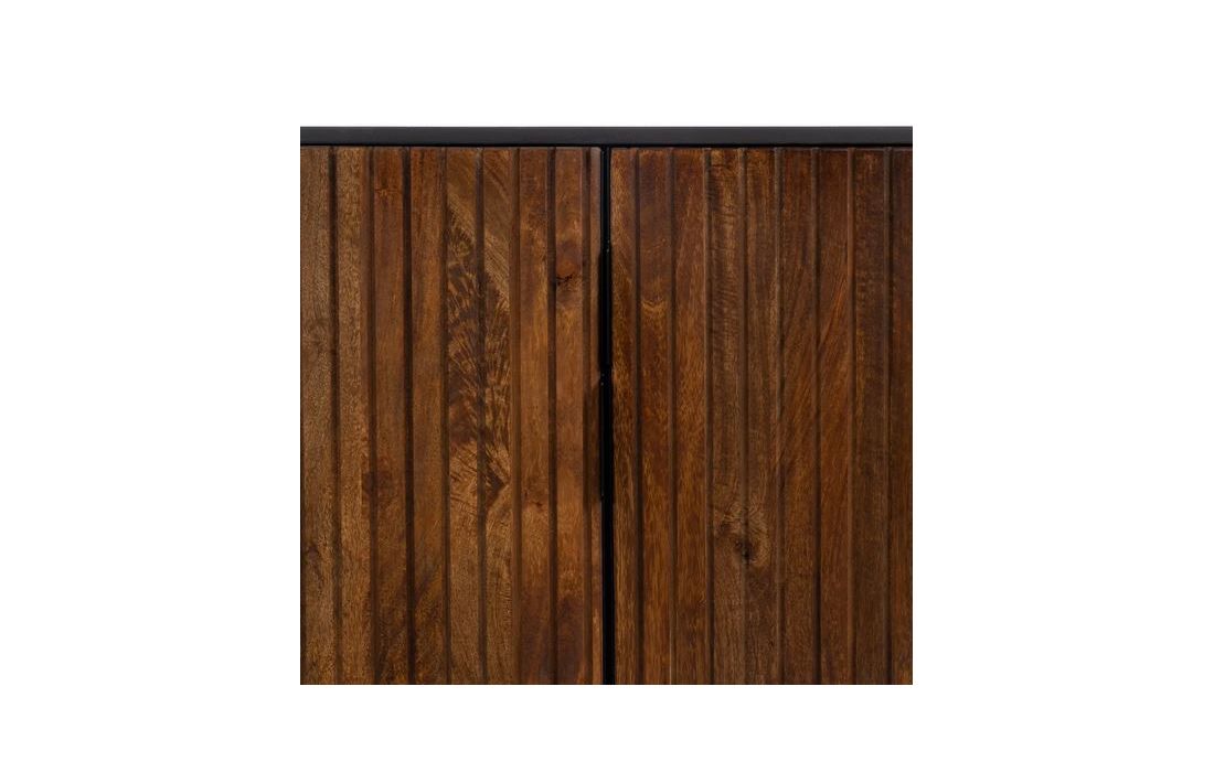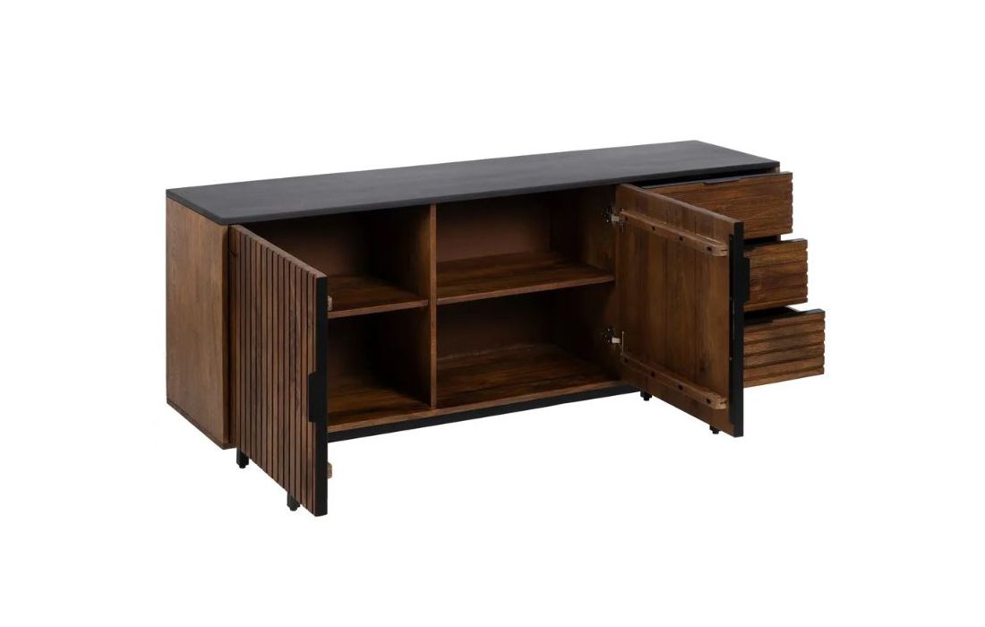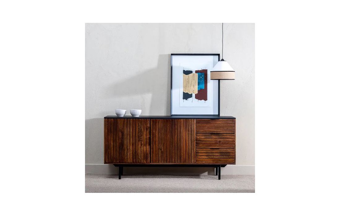 Sideboard with 2 doors and 3 drawers in mango wood with black metal feet