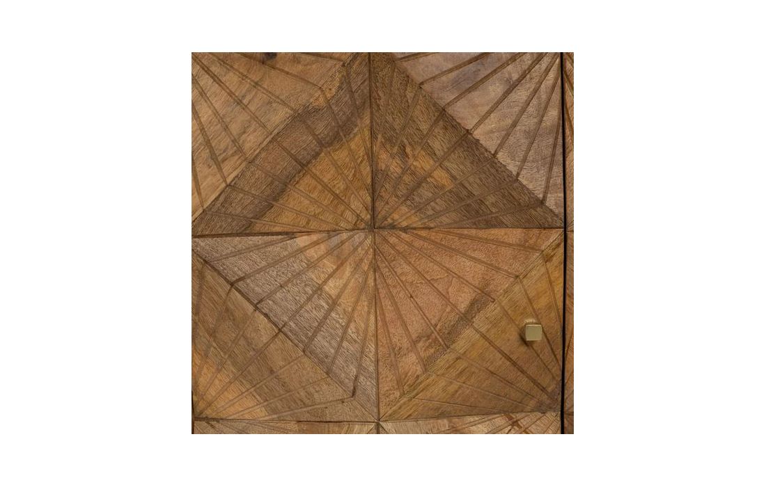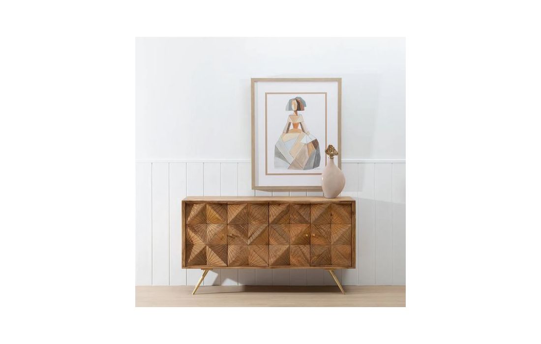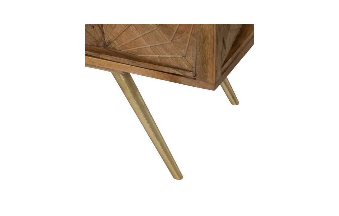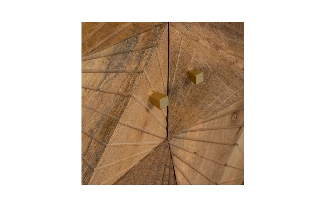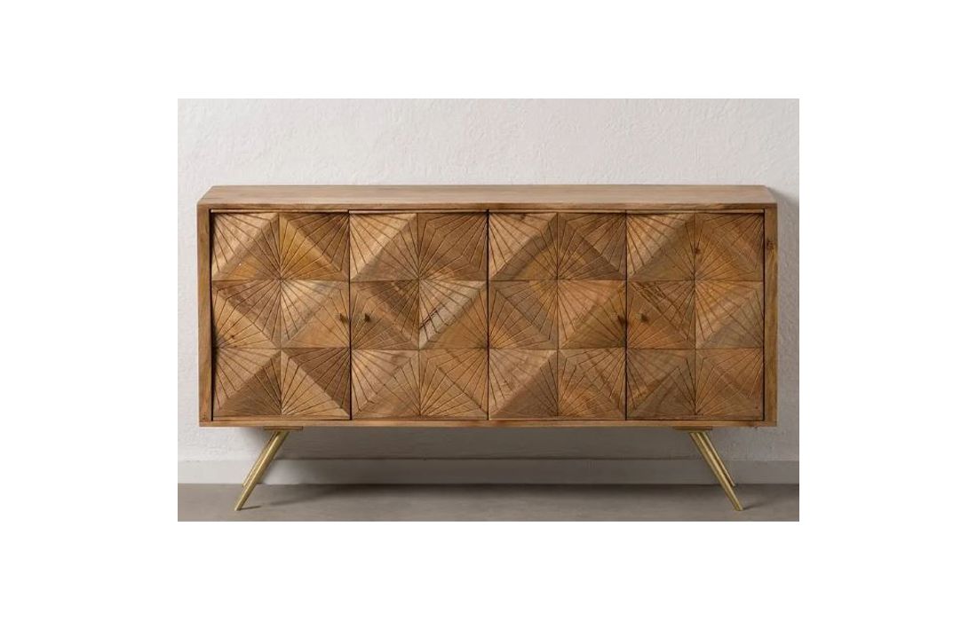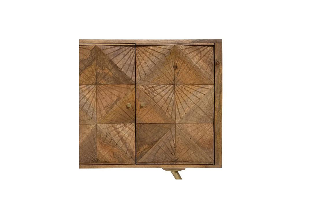Sideboard with 4 doors in natural mango wood and golden metal feet