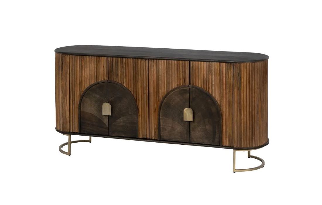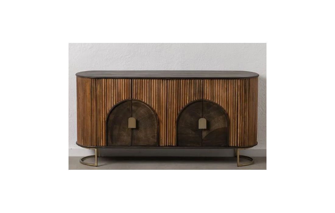 Sideboard with 4 doors in natural mango wood and golden metal feet
