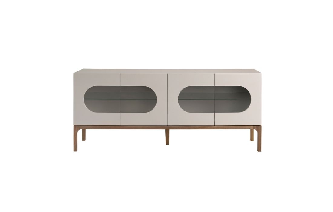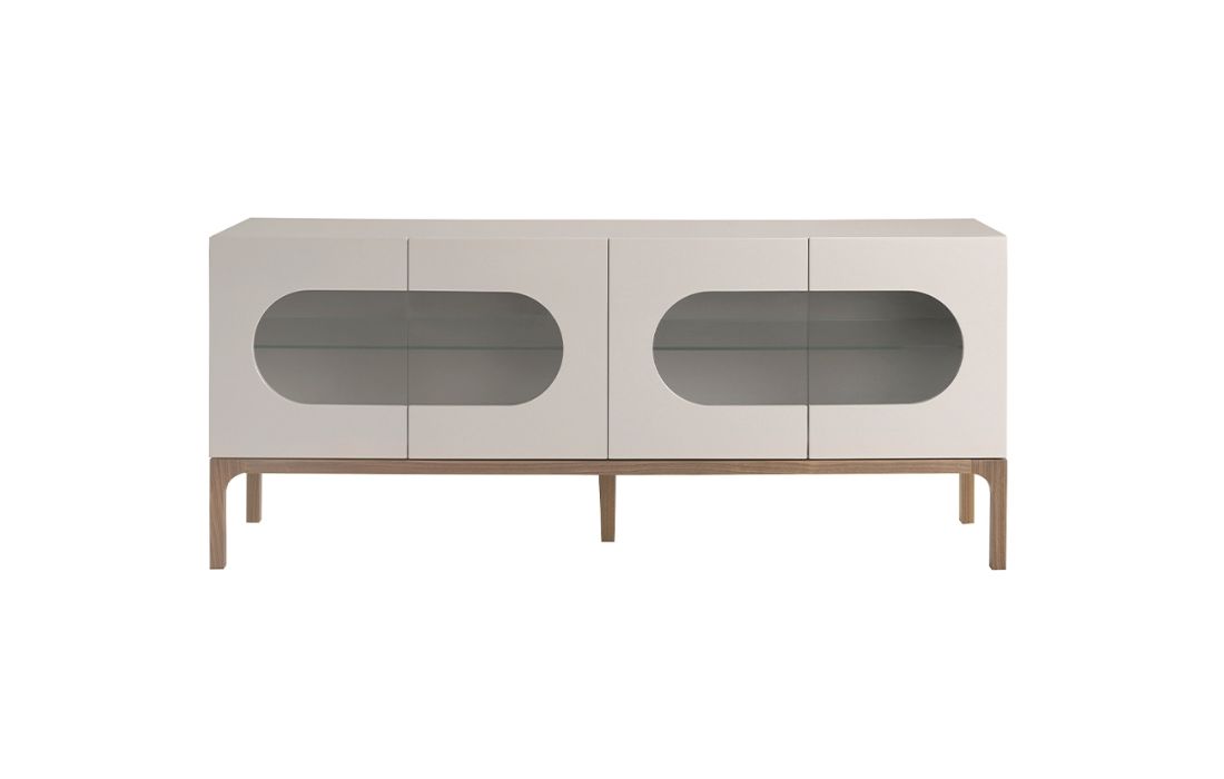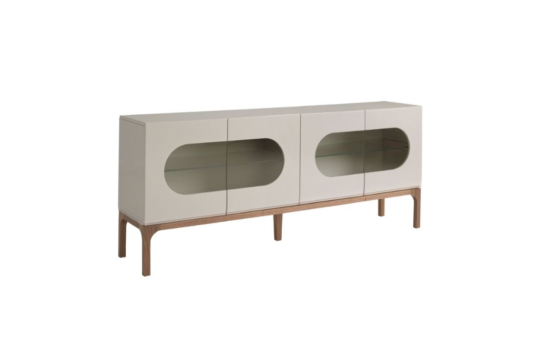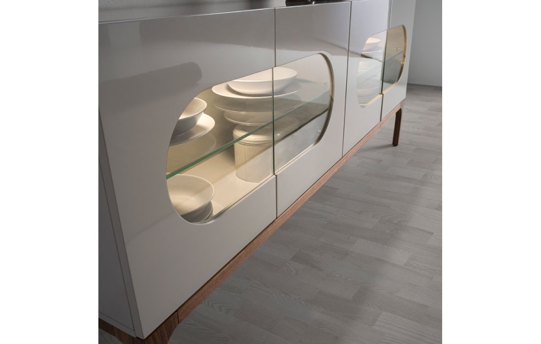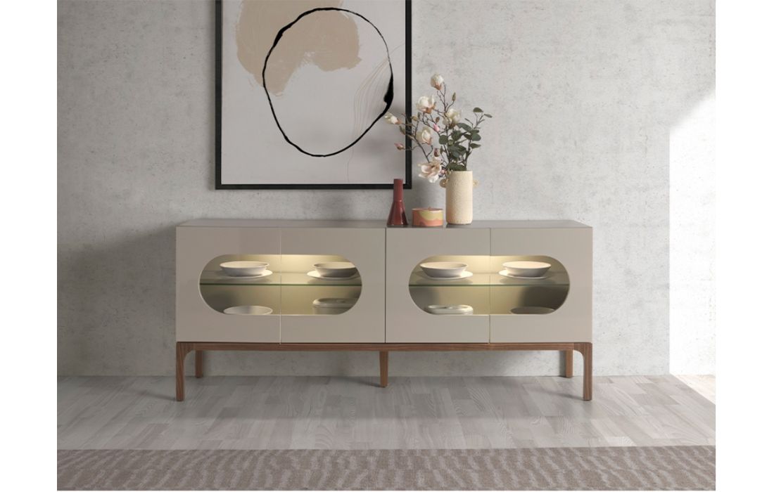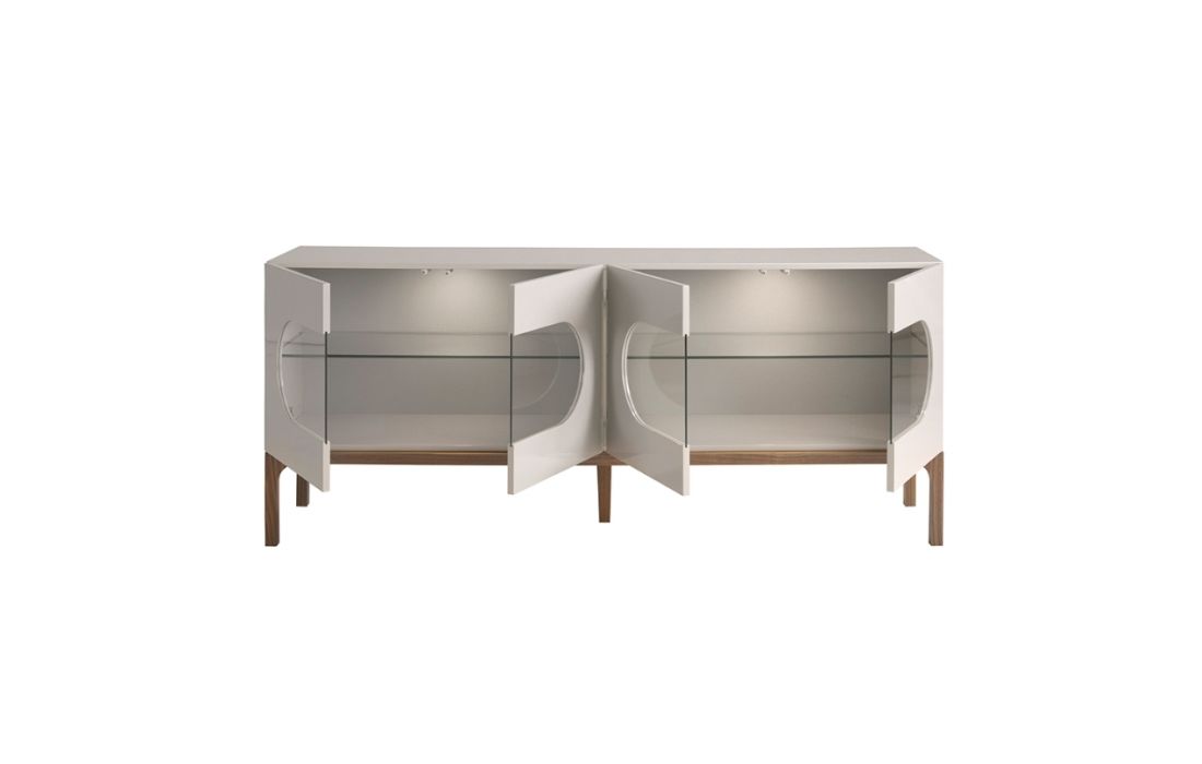 Modern sideboard with MDF structure and MDF legs in walnut color, with internal lighting and its original glass detail, has 4 doorsRecipient :