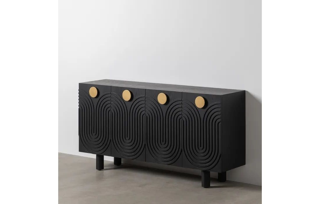4-door sideboard with spruce and ash wood structure, metal feet.