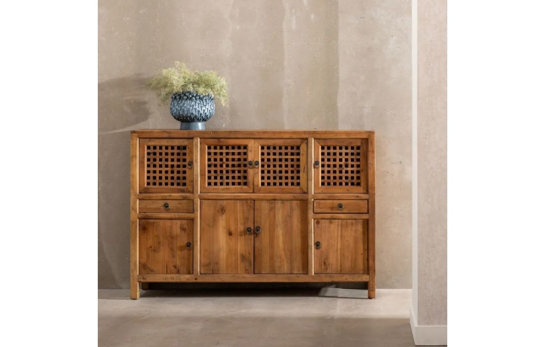 Sideboard with 8 doors made of recycled pine.