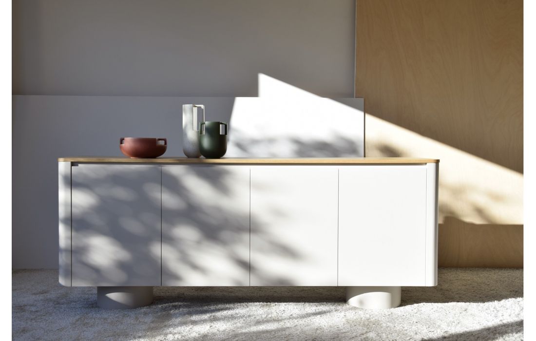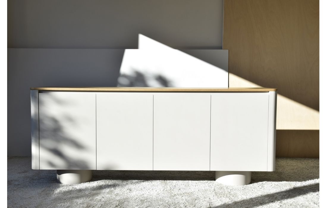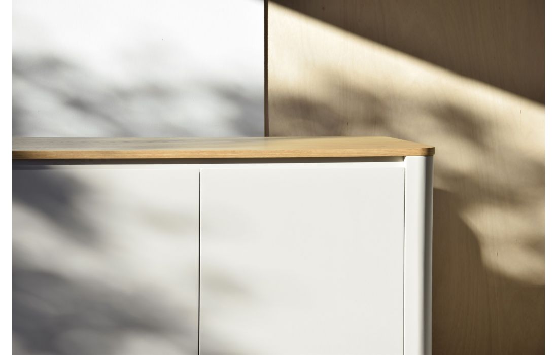 Sideboard with lacquer structure with natural wood top. 2 doors.
