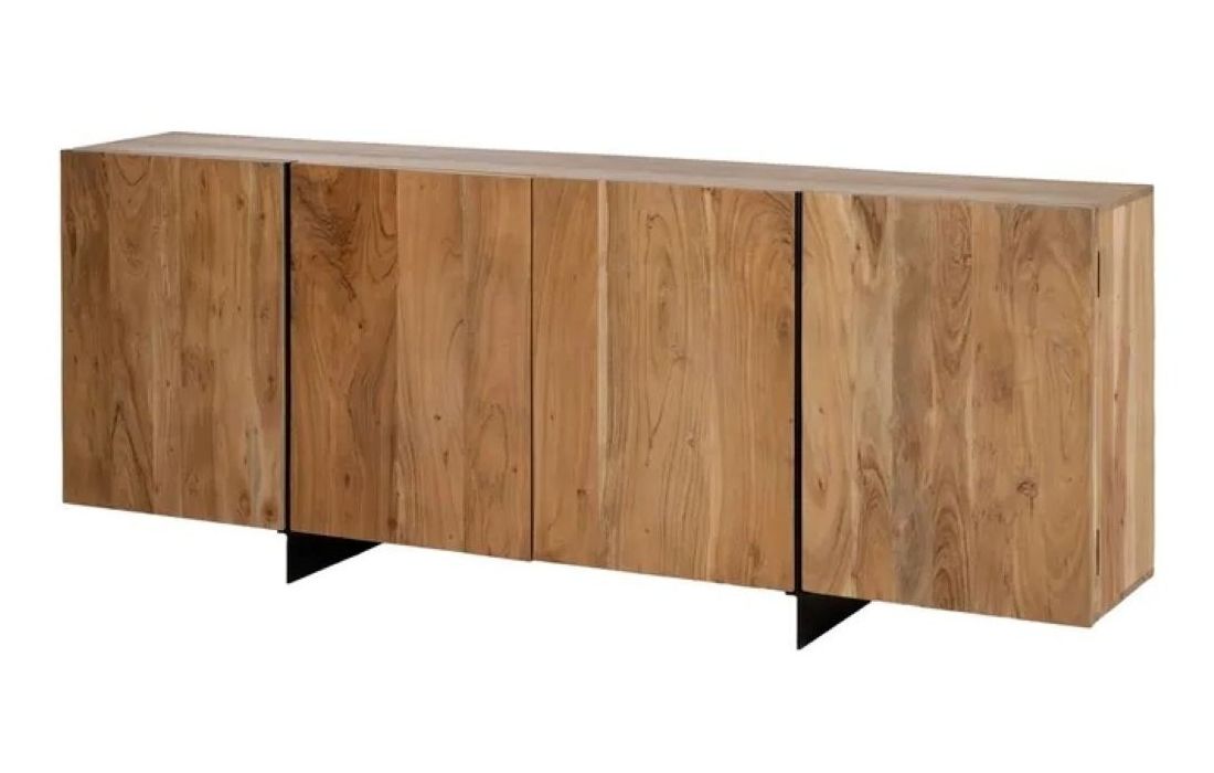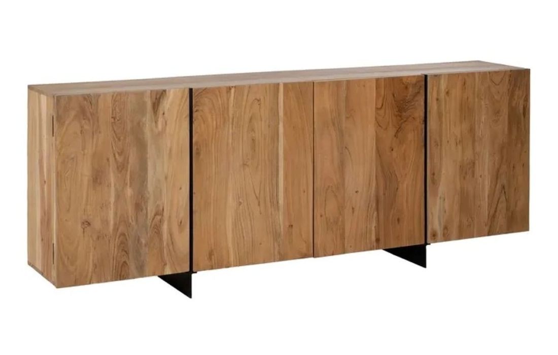 Modern design sideboard in acacia wood with iron legs, features straight, clean lines and has 4 doorsRecipient :