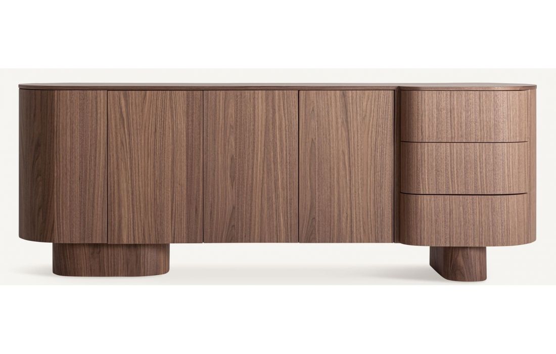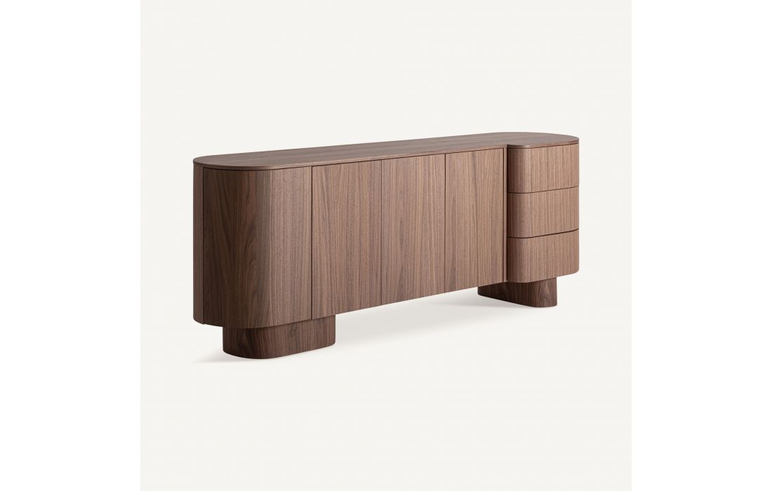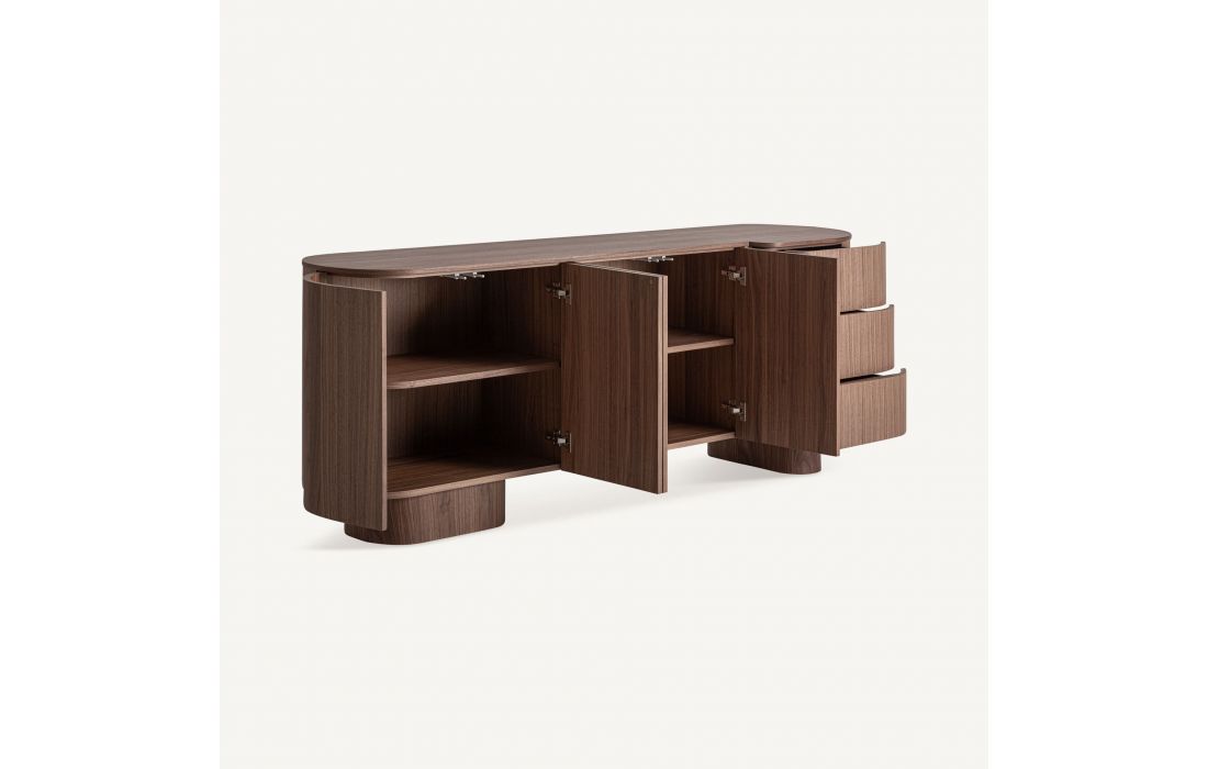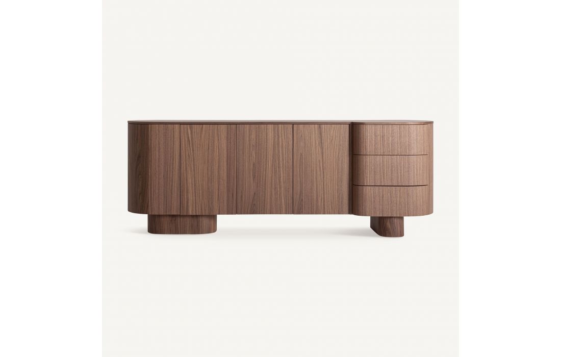 The KEXBY sideboard stands out for its contemporary design and combination of MDF with walnut veneer.A piece that brings visual harmony and a touch of natural modernity.