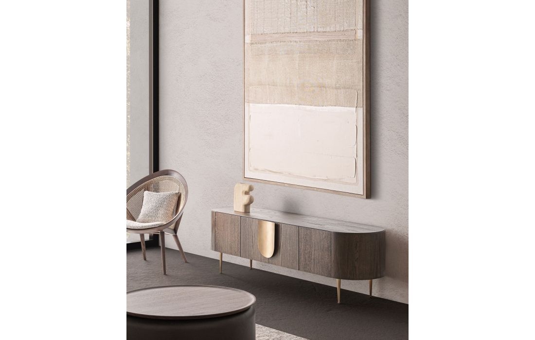 A design that stands out for its simplicity and visual impact, the Treignac sideboard.Its oak-stained finish and steel details make it a sophisticated piece for elegant spaces.