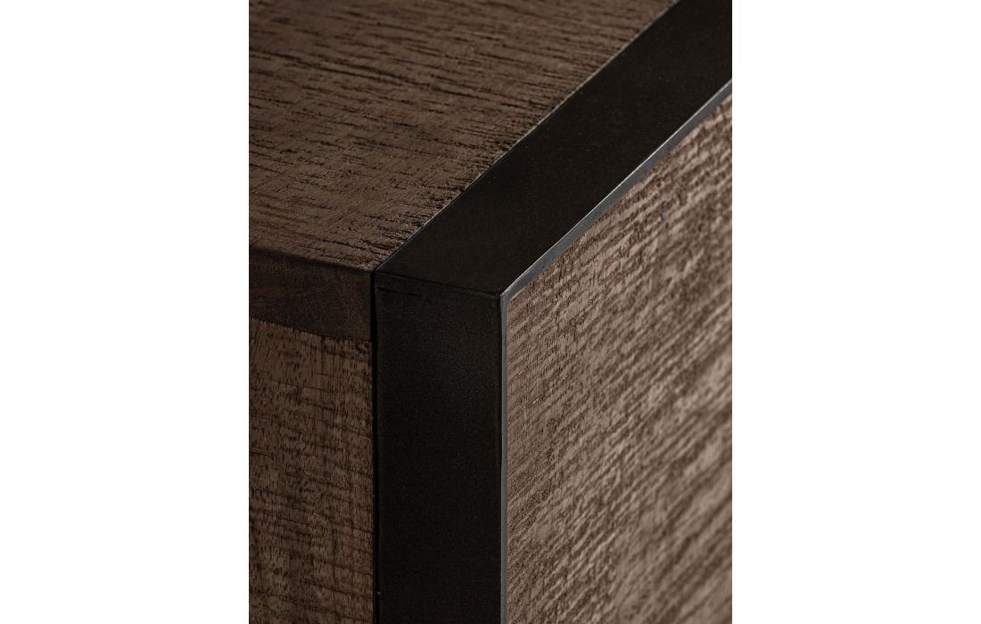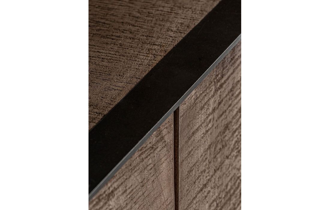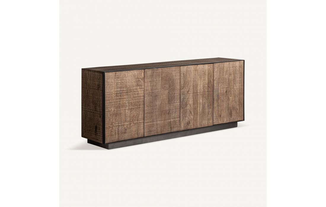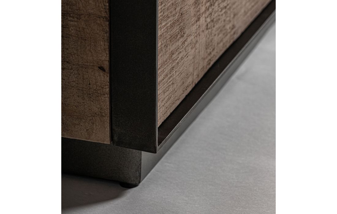 The KREFELD sideboard stands out for its imposing presence and Art Deco aesthetic.Mango wood is combined with iron, creating a piece with strong visual character that brings depth and elegance to any environment.