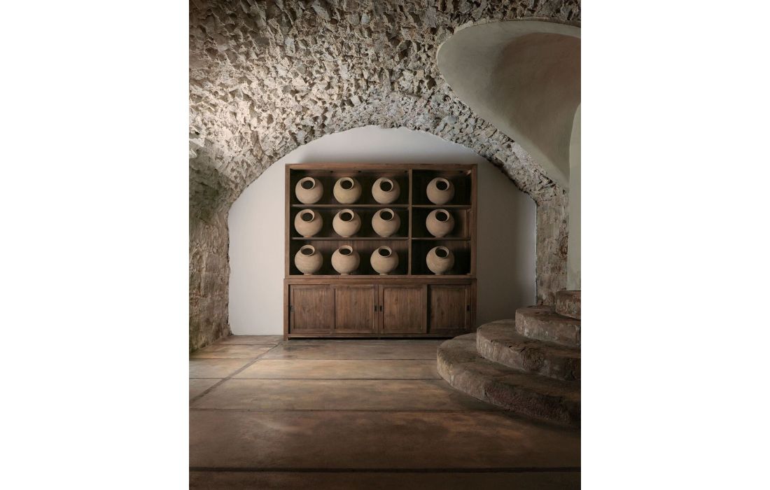 Organization with elegance.The NYSTED sideboard in recycled teak, with glass doors and open compartments.A functional piece that graces any dining room.