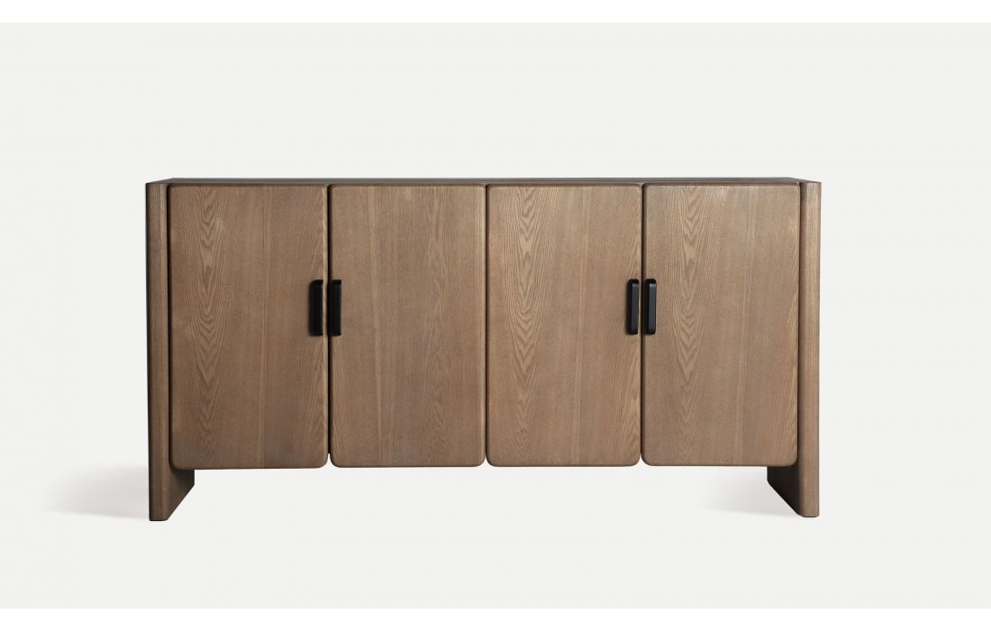The BUSK sideboard, made of ash wood, combines a modern design with a rustic touch thanks to its natural wood finish and clean lines.Its doors with rounded edges and handles give it a contemporary and sophisticated style.