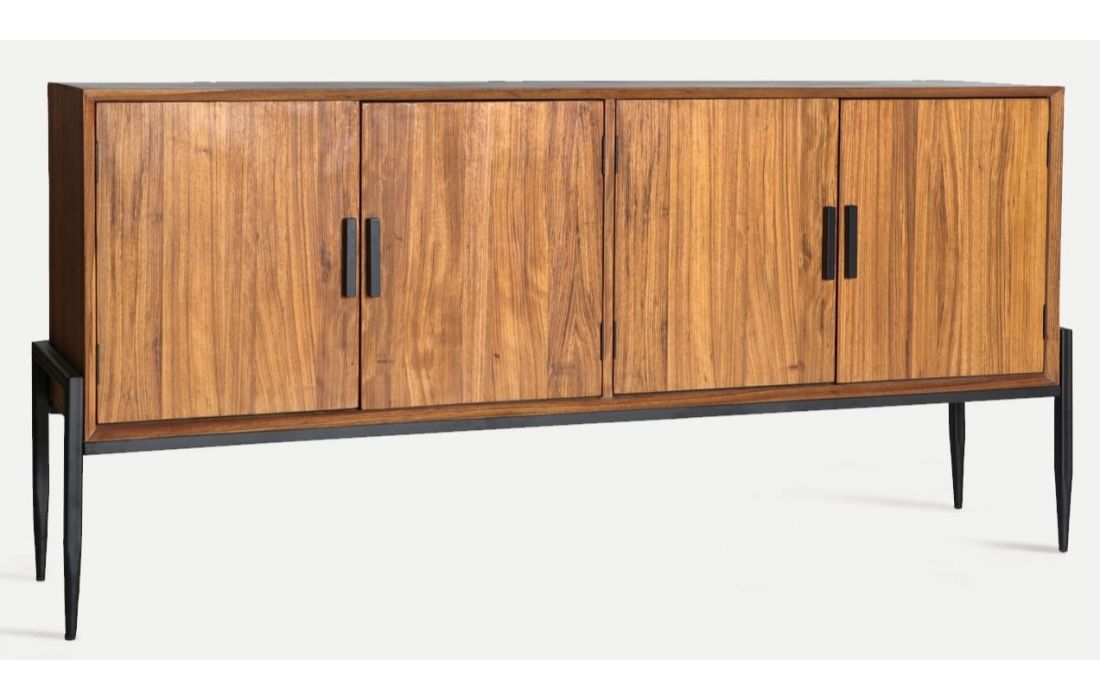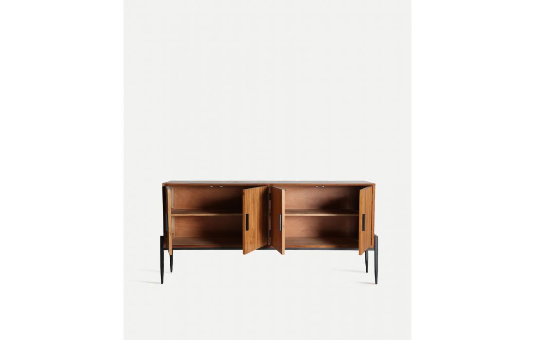 The LAURIS SIDEBOARD embodies the charm of Nordic style in a warm and natural design.Its fir wood structure is combined with plywood and iron, creating a perfect balance between visual lightness and solidity.