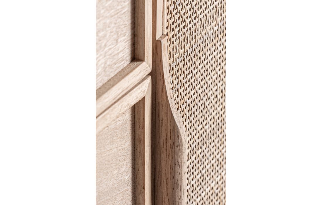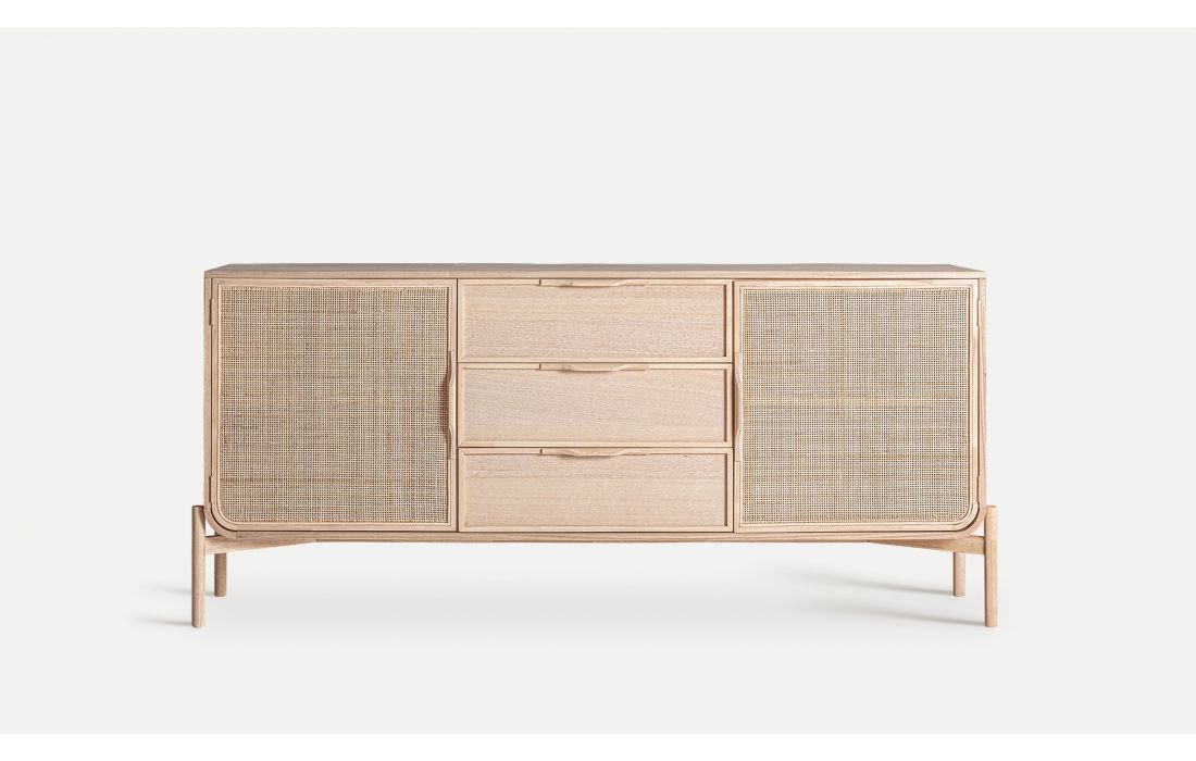 The WEURTZ sideboard, crafted from ash wood, is ideal for dining rooms or rooms with rustic and elegant styles.Its design includes wide drawers and doors that offer generous storage space for tableware, textiles, and other items.