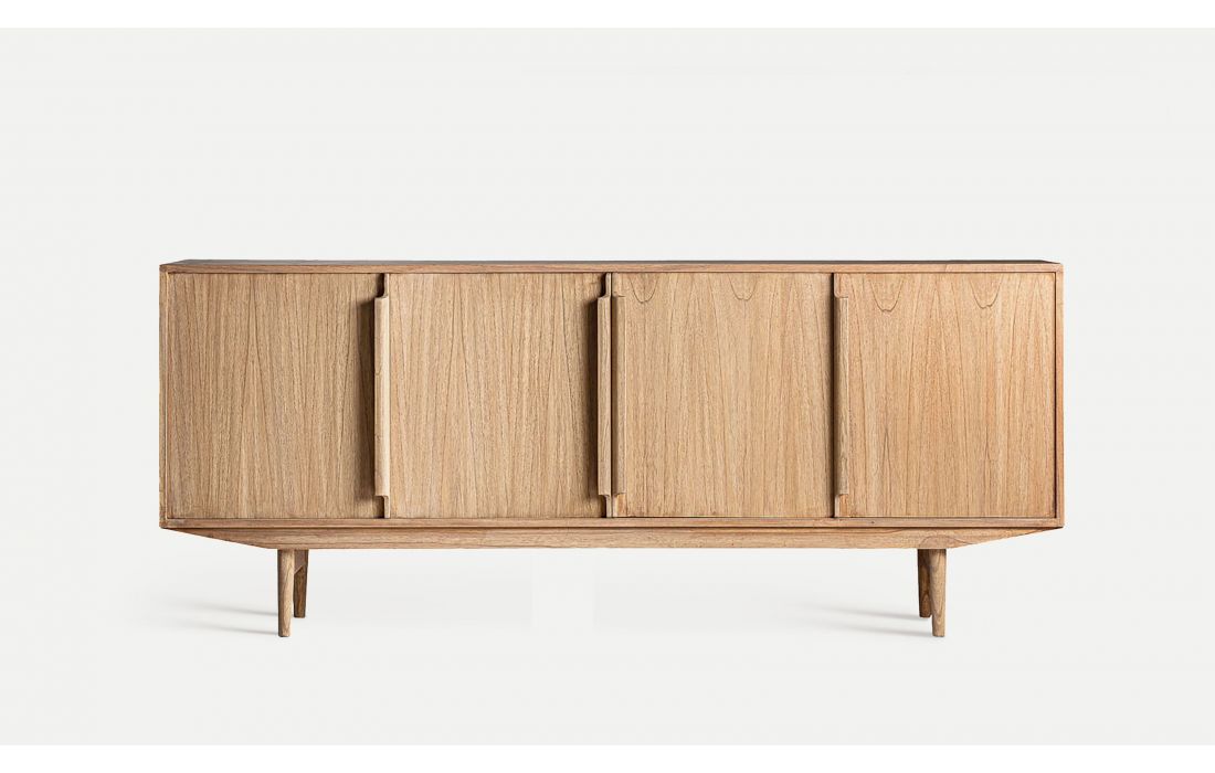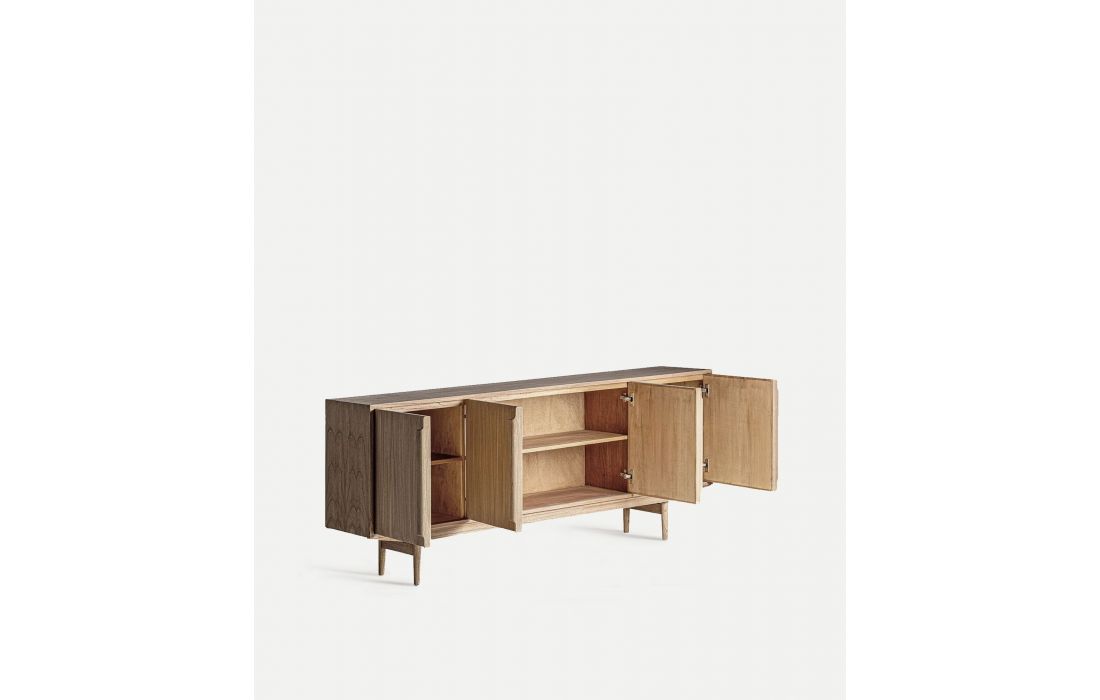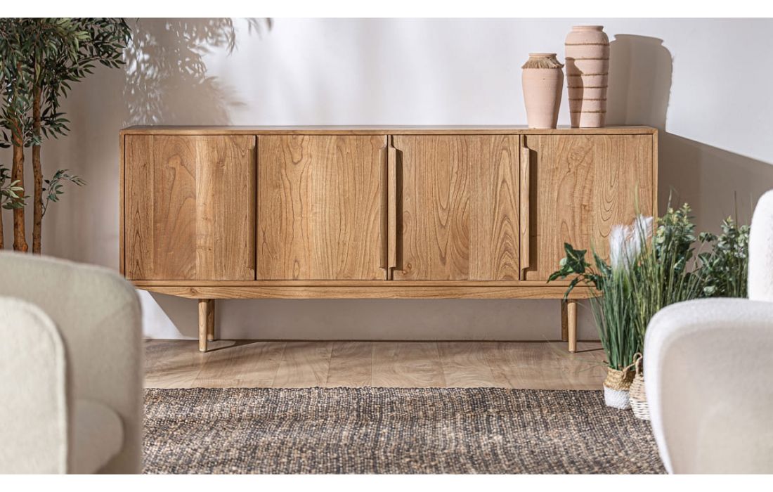 The NYRY sideboard stands out for its construction in high-quality mindi wood, which guarantees durability and resistance, making it ideal for displaying a variety of objects.