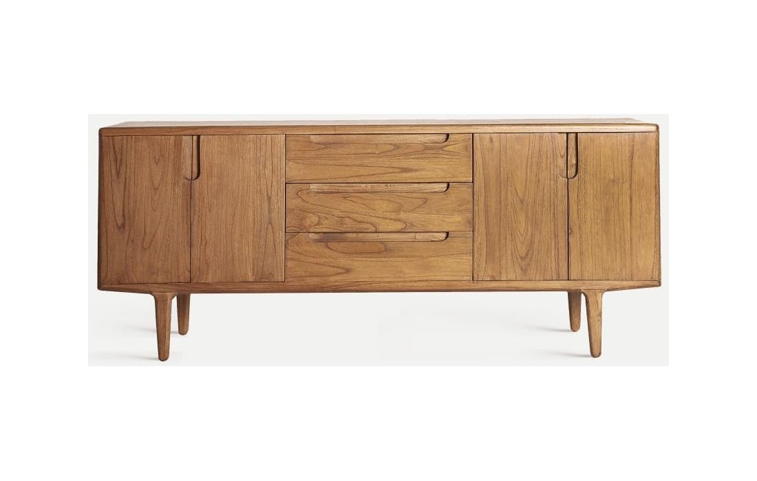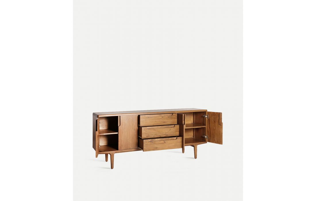 The SLOUGH sideboard in mindi wood is ideal for dining rooms or rooms with a rustic and functional style.Its elongated structure has drawers and doors that offer ample storage space.