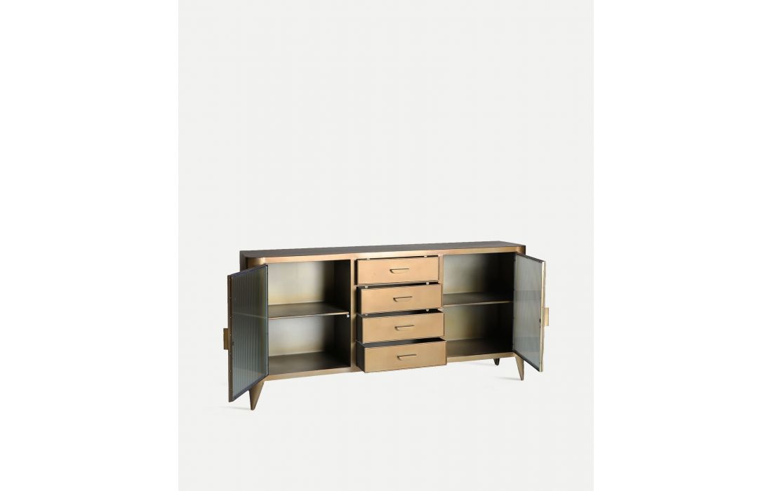The SPESSA sideboard stands out for its industrial design and elegant character.With an iron frame and glass details, this piece is ideal for spaces that seek to combine functionality with a sophisticated and urban touch.