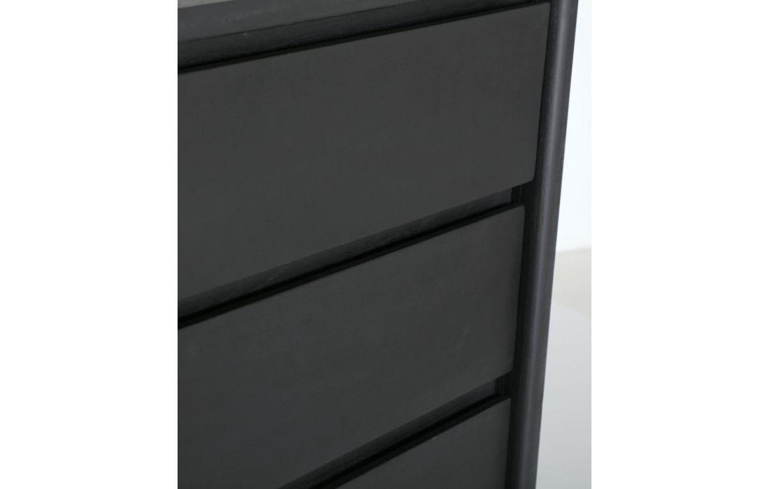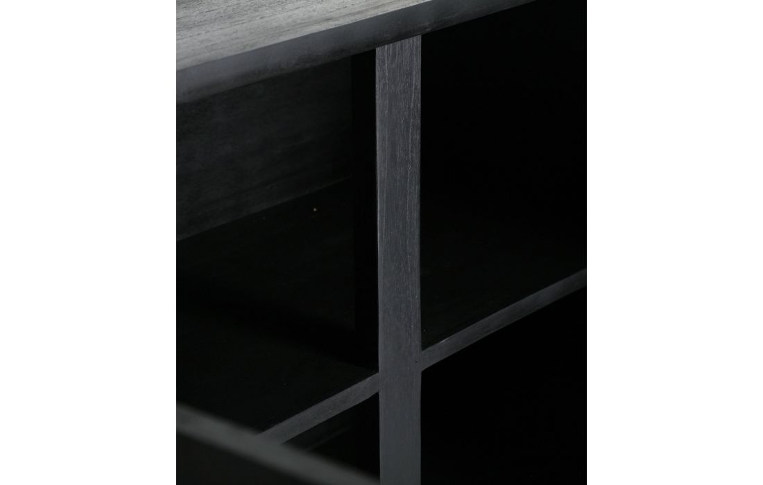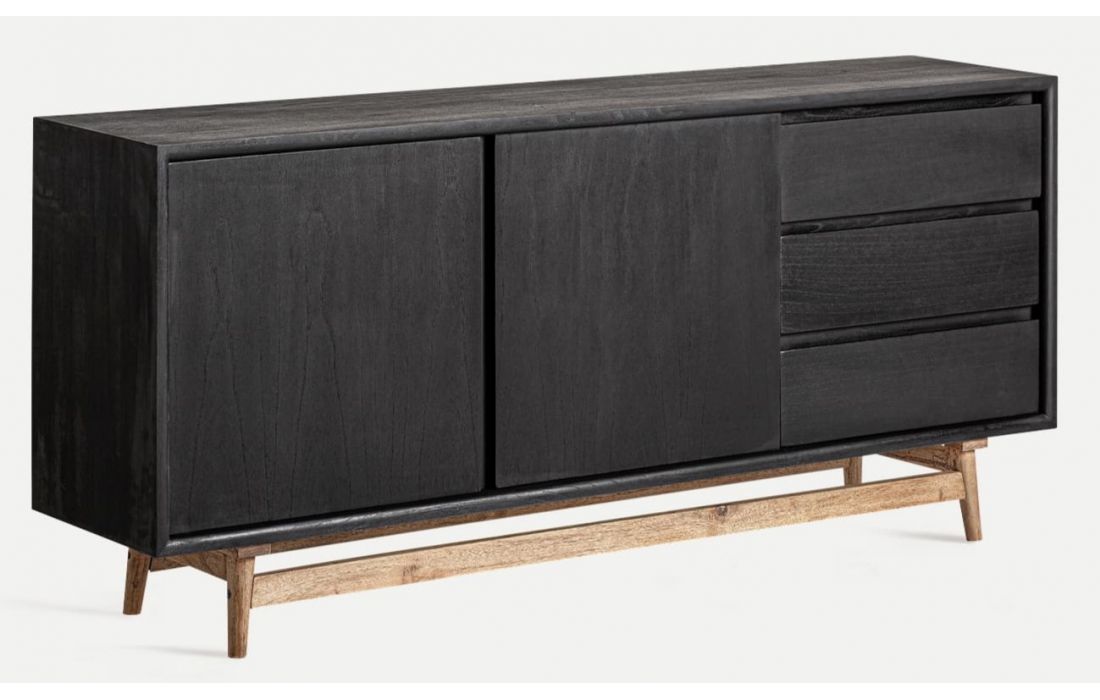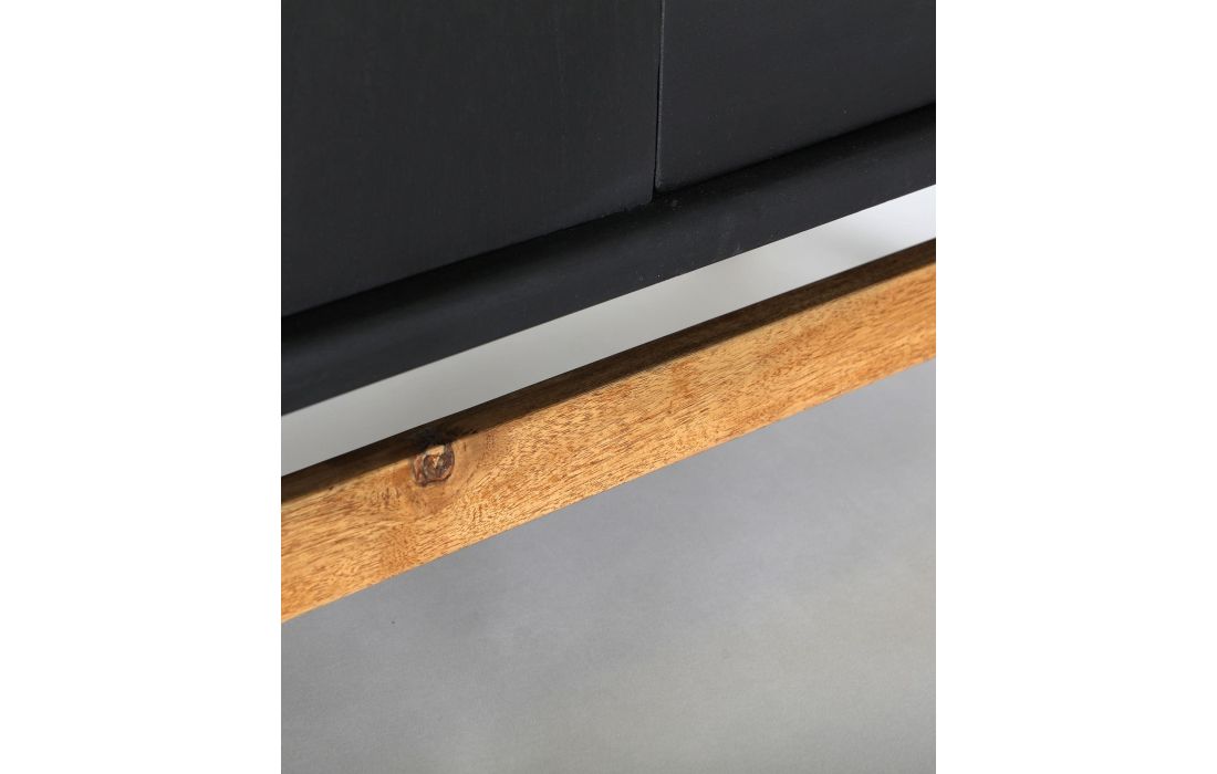The THIERS sideboard in Mindi wood is ideal for modern dining rooms or bedrooms.Its structure includes doors and a base in natural wood, providing an elegant contrast.