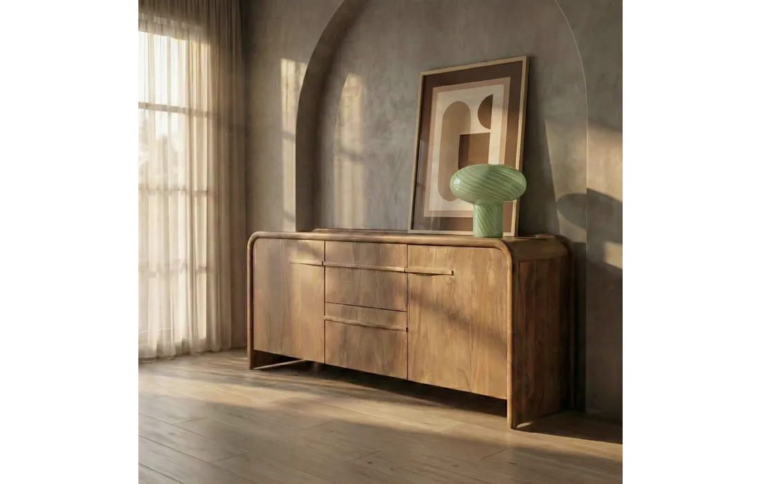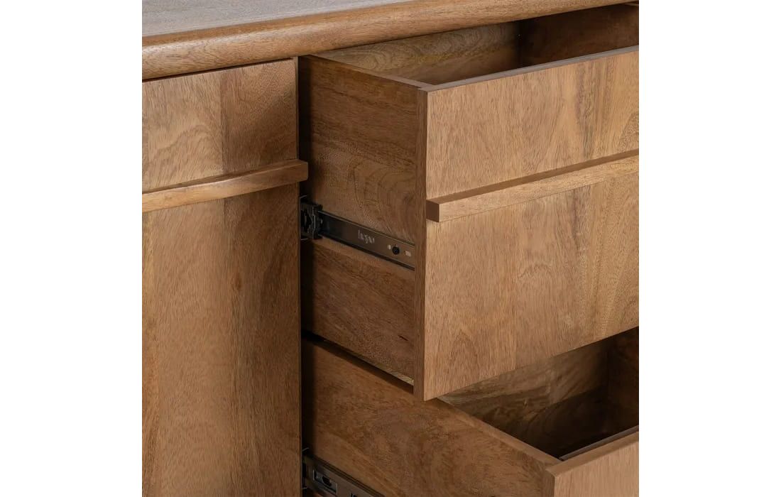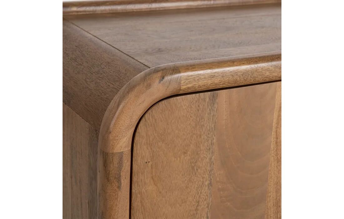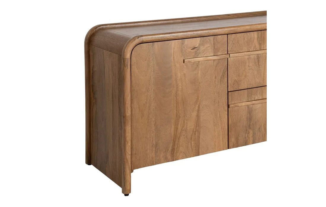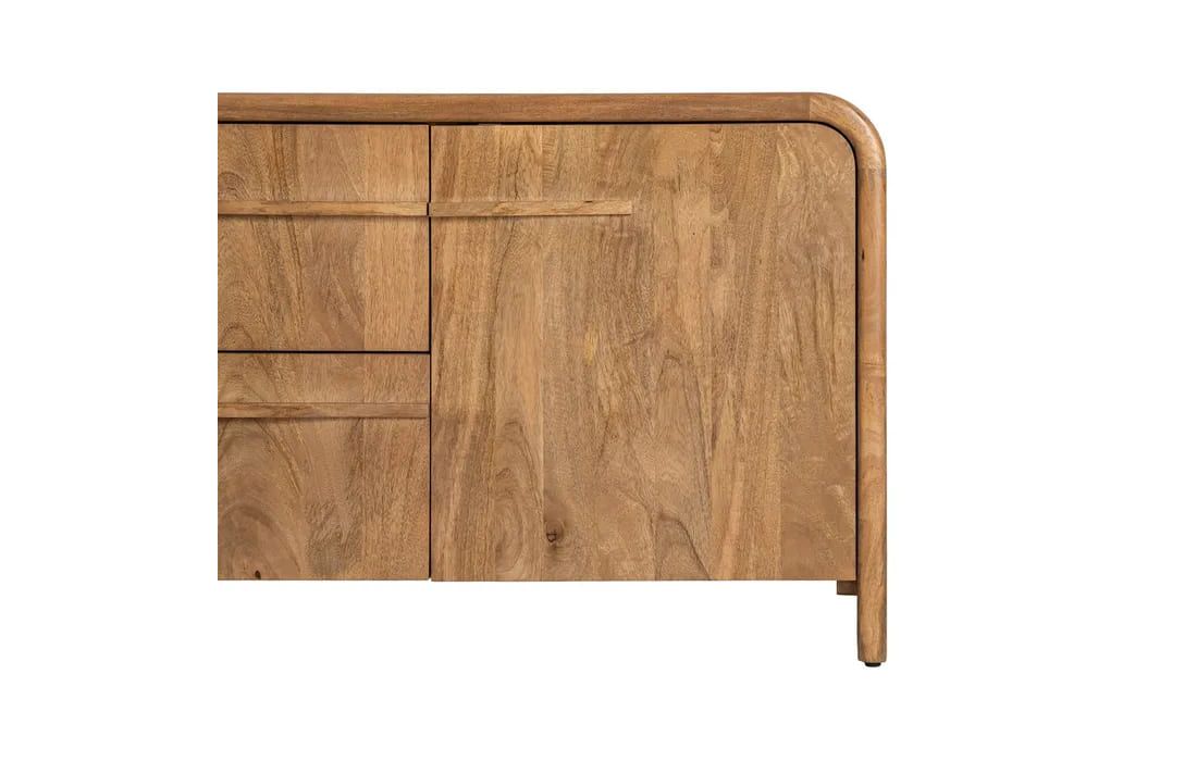This sideboard stands out for its elegant and contemporary design, marked by smooth lines and rounded corners that give the piece lightness and sophistication. Made of mango wood, it has natural grain and warm tones that make each unit unique.Recipient :