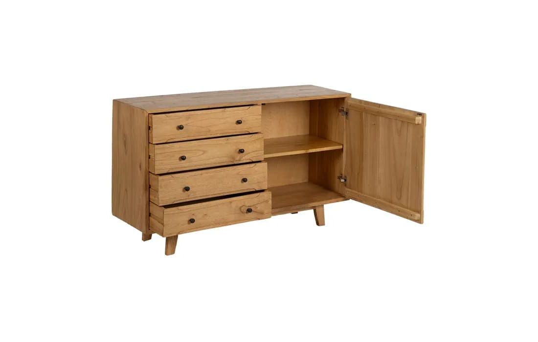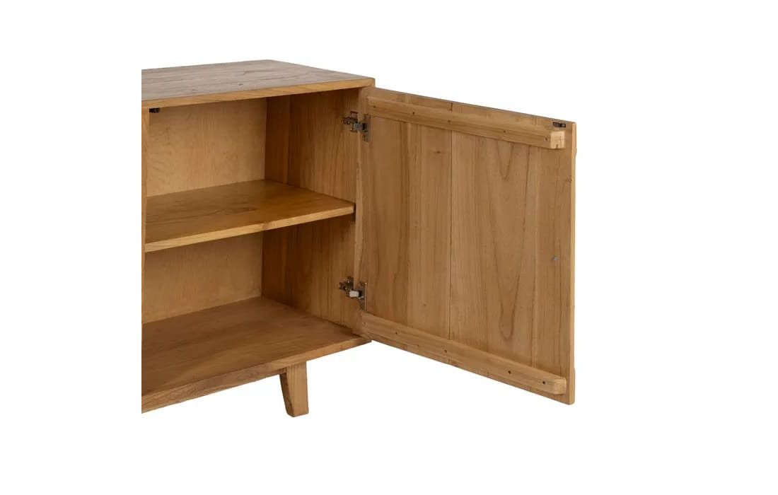This sideboard combines functionality and timeless design, making it a versatile piece for any room. Crafted from mindi wood, it stands out for its warm tones and natural grain, lending it authenticity and charm.Recipient :