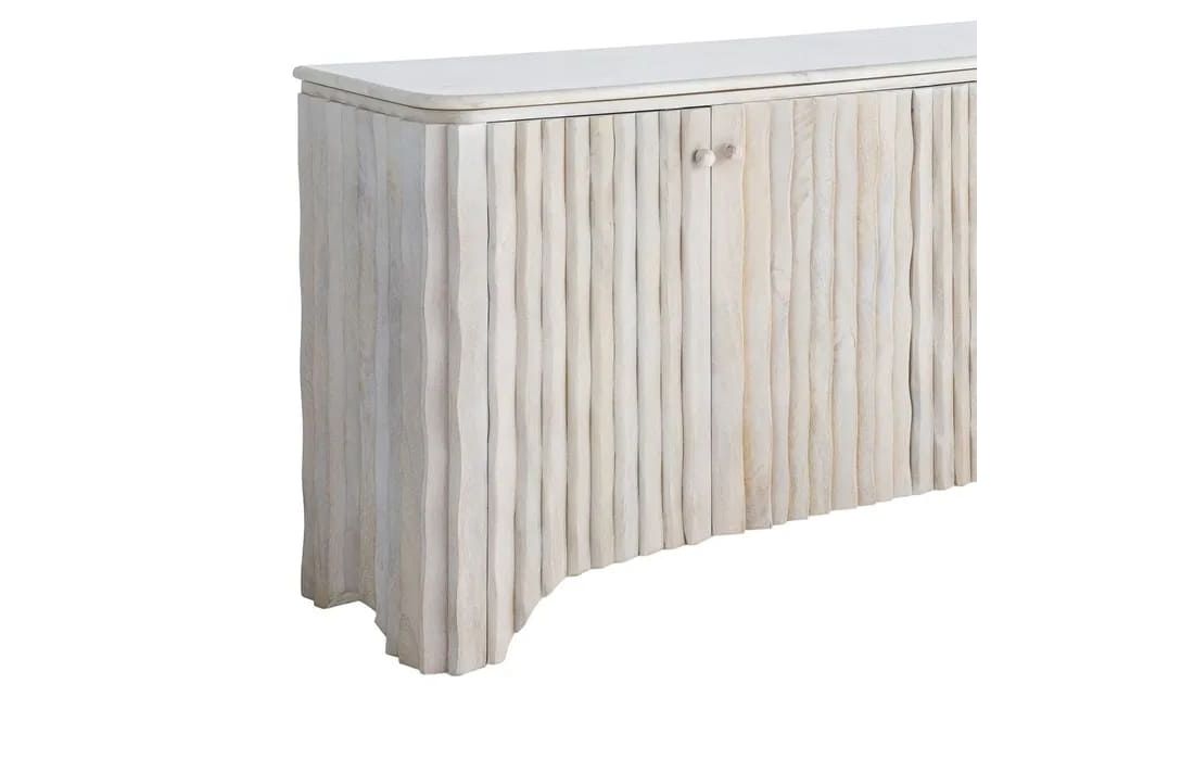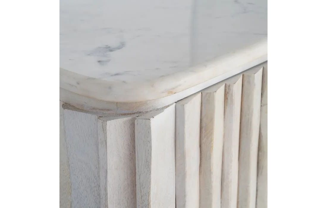 Mango wood sideboard with a marble top, elegant and durable. It combines the natural beauty of wood with the sophistication of stone, offering ample storage space. Ideal for modern rooms seeking functionality with a sophisticated touch.Recipient :