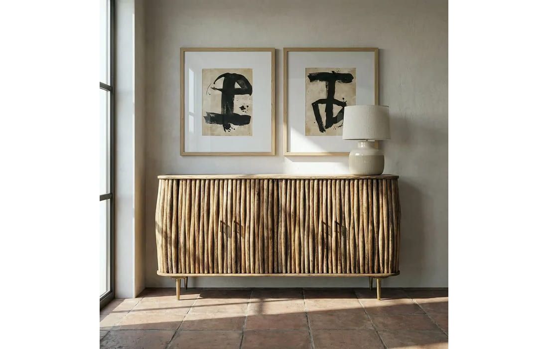 This sideboard is a functional piece, made of mango wood, distinguished by its high density and structural strength. The finish enhances the organic texture of the grain, ensuring a sober and timeless aesthetic.Recipient :