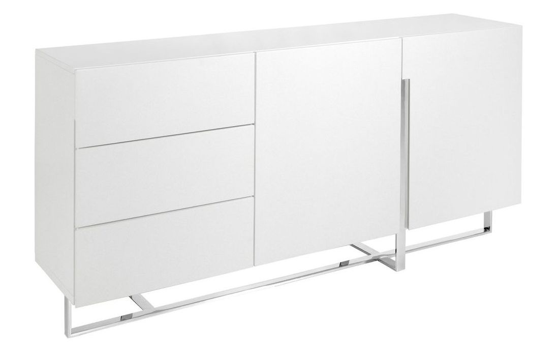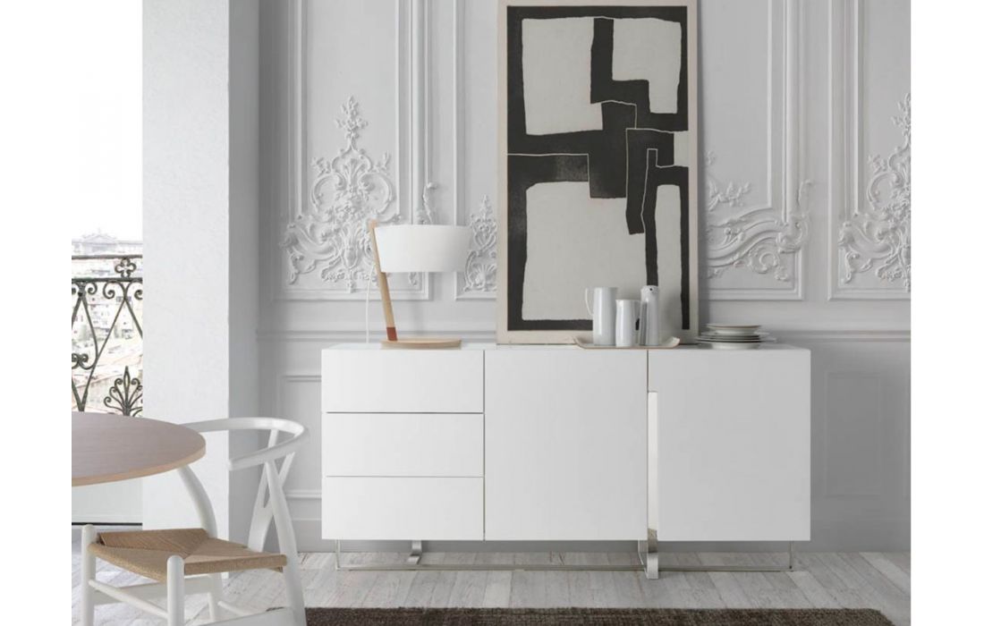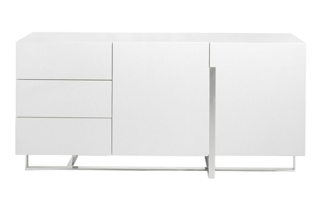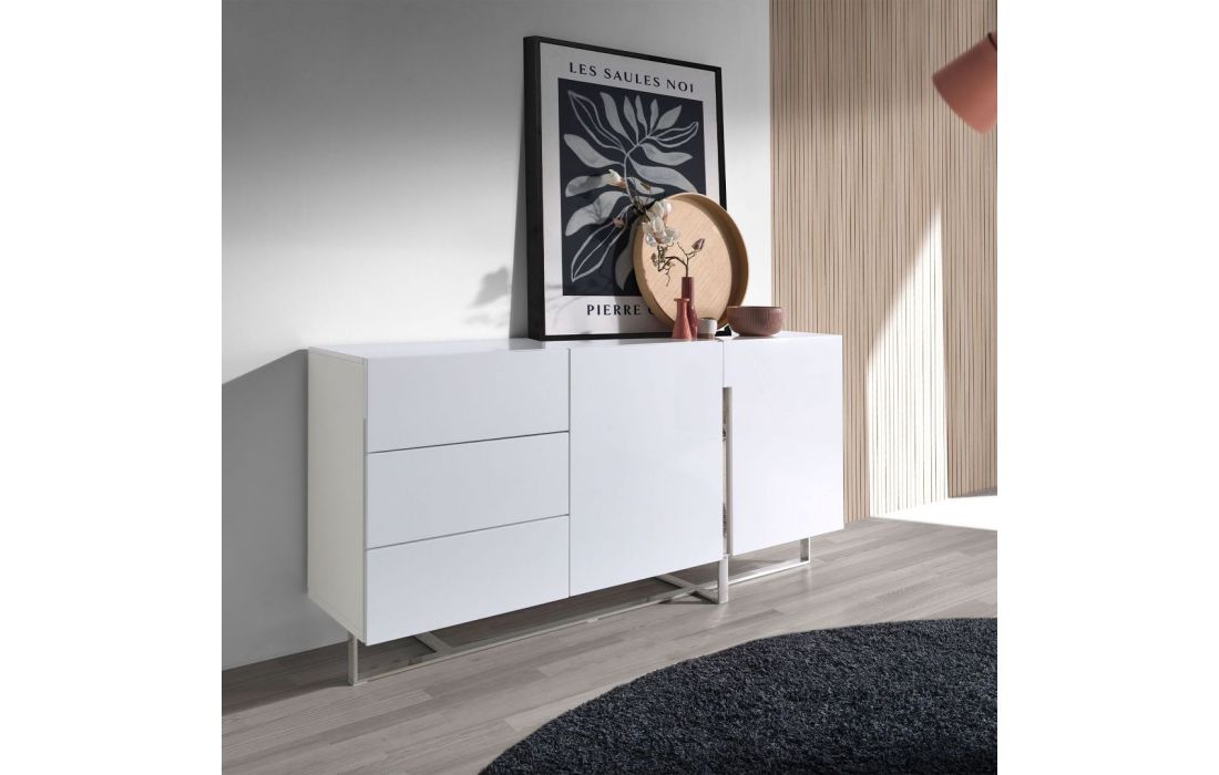 Modern design sideboard with white MDF structure and stainless steel legs, with original stainless steel detail and has ample storage with 3 drawers and 2 doorsRecipient :