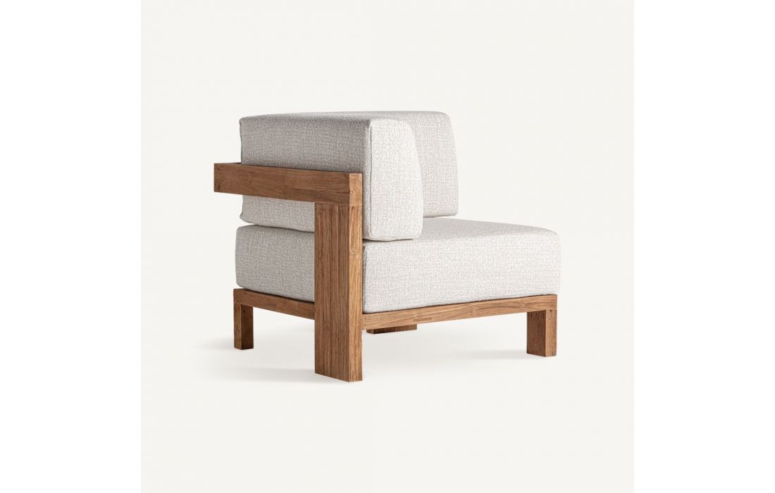 Modules that combine the elegance of recycled teak wood with the softness of blended polypropylene and its removable and detachable cover makes it a versatile pieceRecipient :