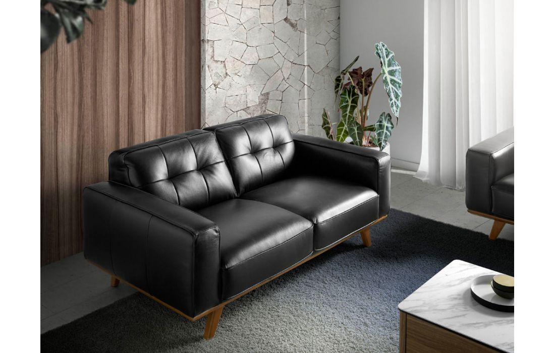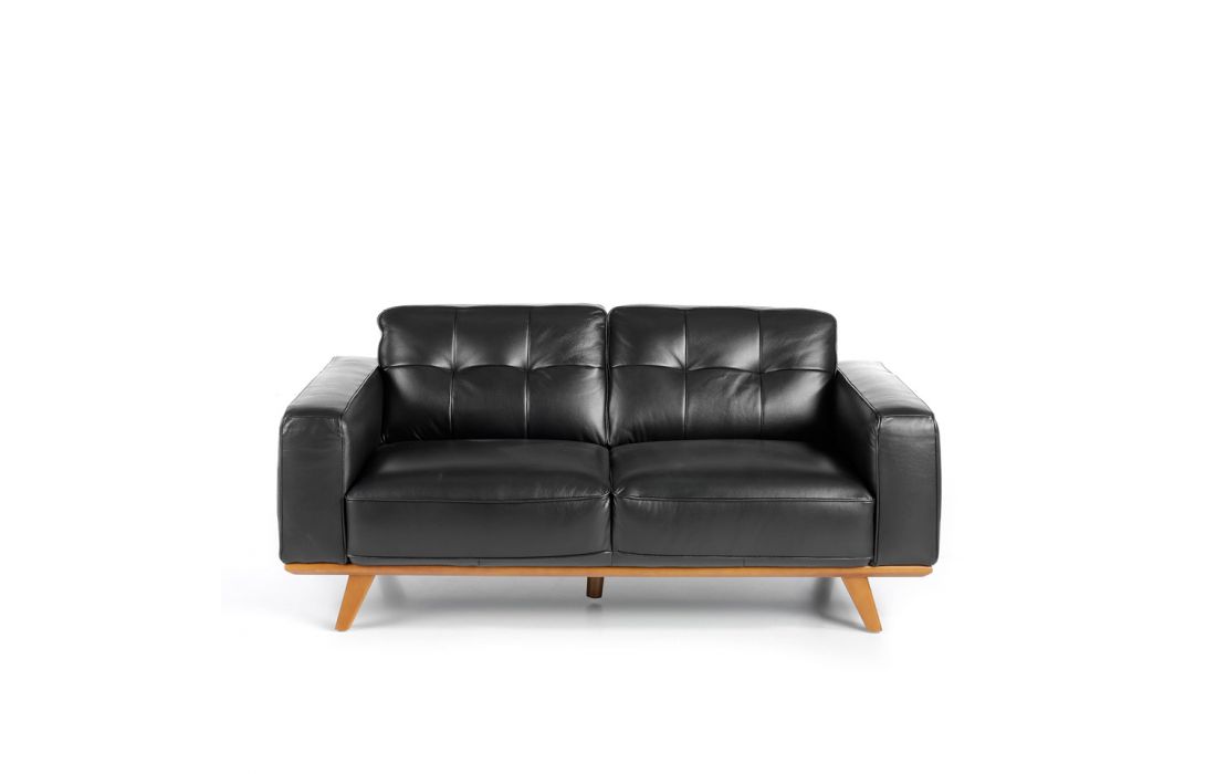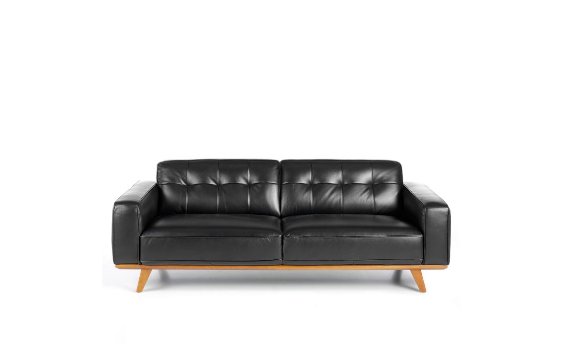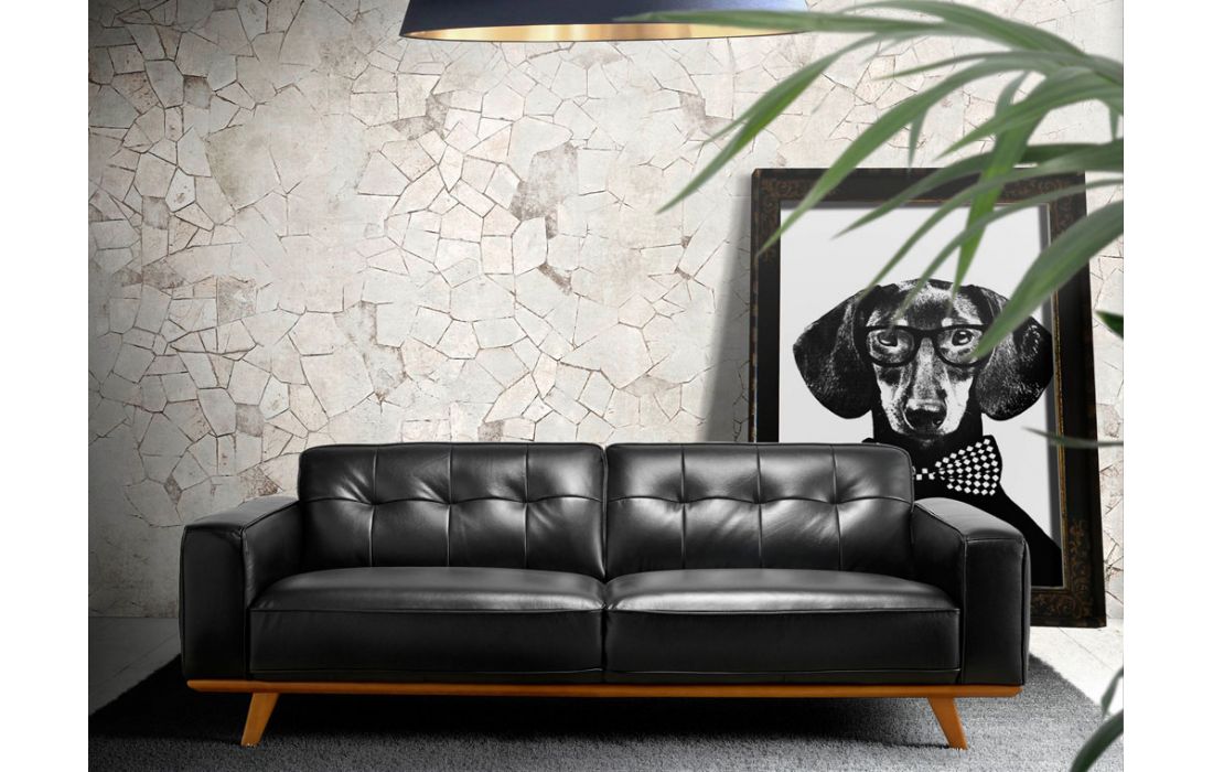 Sofa with a modern design, upholstered in cowhide and walnut-colored wooden legs, this sofa will add a touch of avant-garde eleganceRecipient :