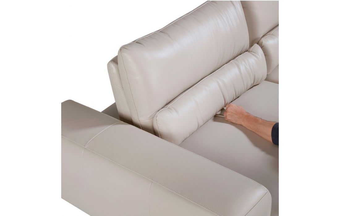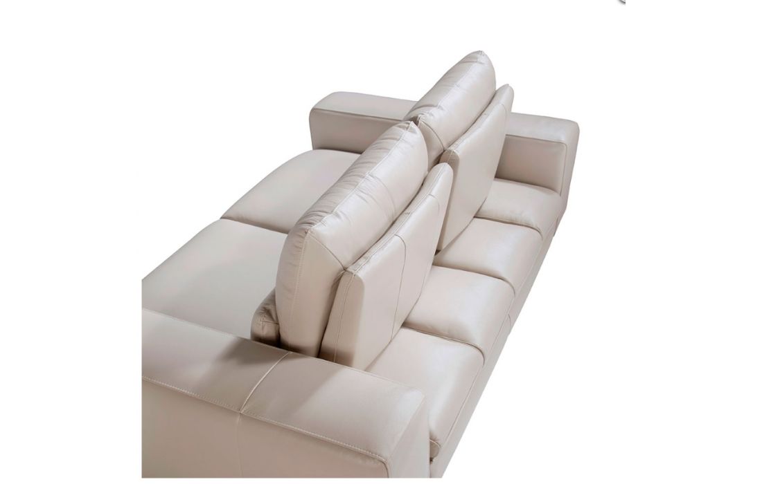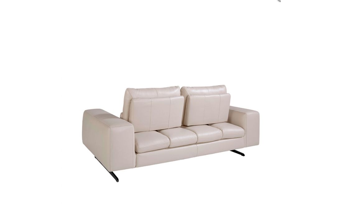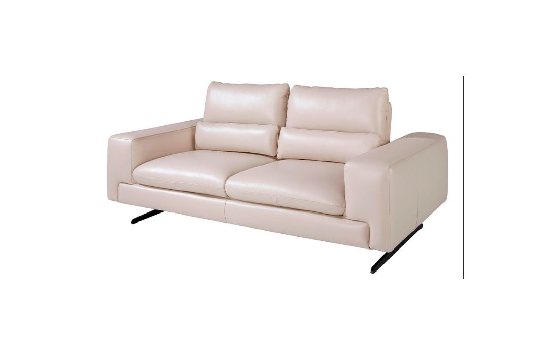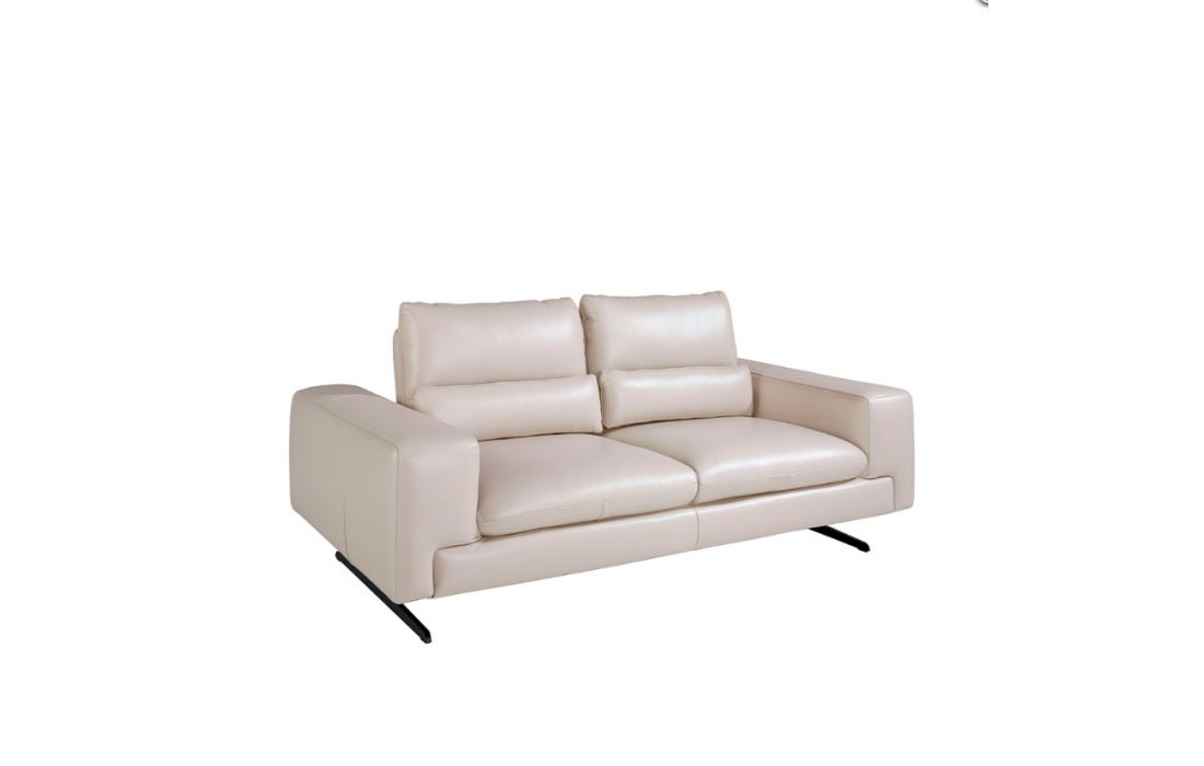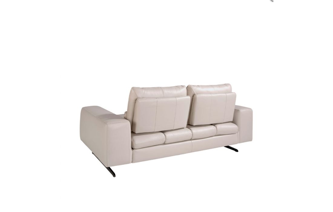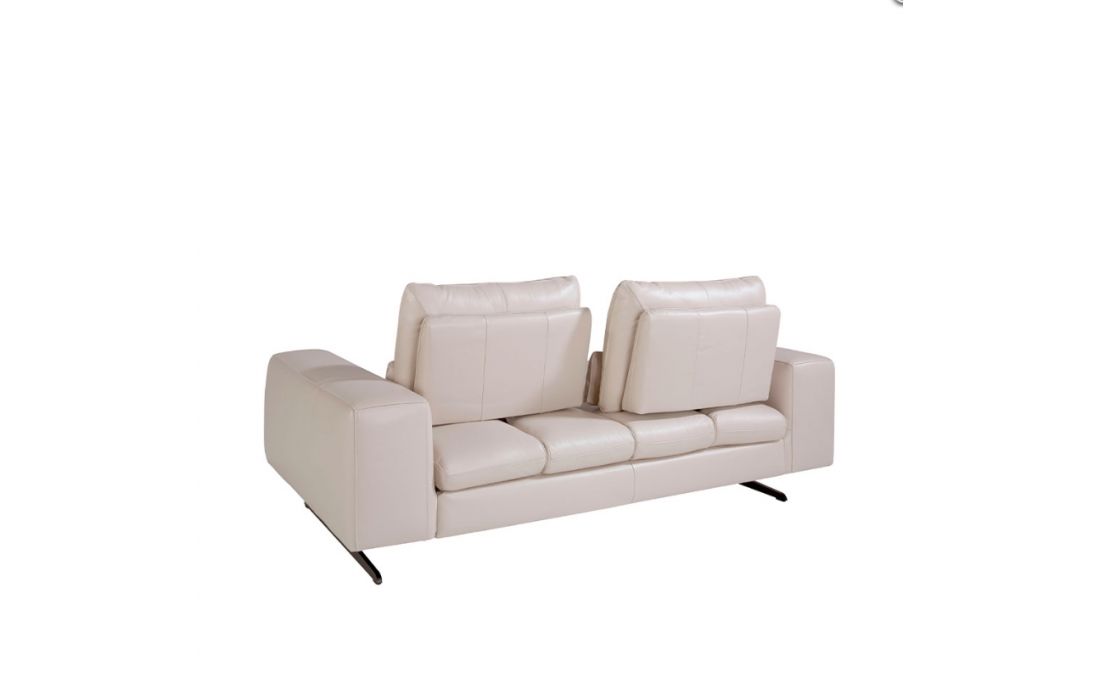 2-seater sofa with modern design upholstered in 1.25 mm thick leather. A sofa with an avant-garde and current style, with a robust internal structure in natural pine wood and original black solid stainless steel legs, which gives it that touch of sophistication and elegance that you are looking for in your living room. Its backrests with tilting mechanisms allow for greater comfort with additional depth when sitting.