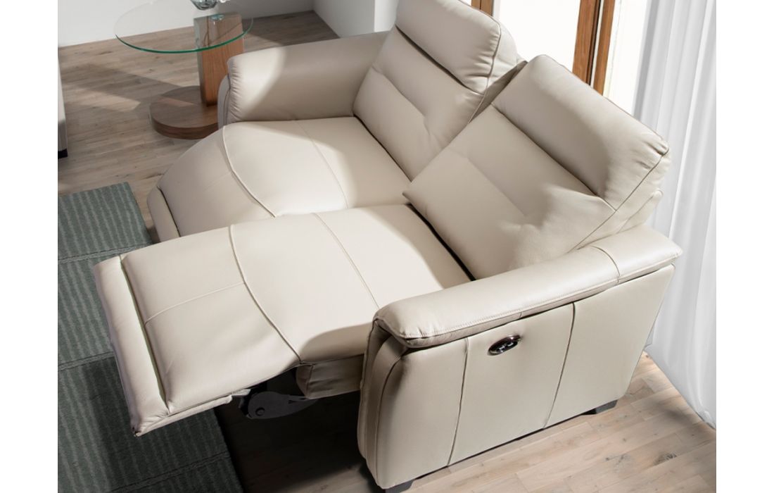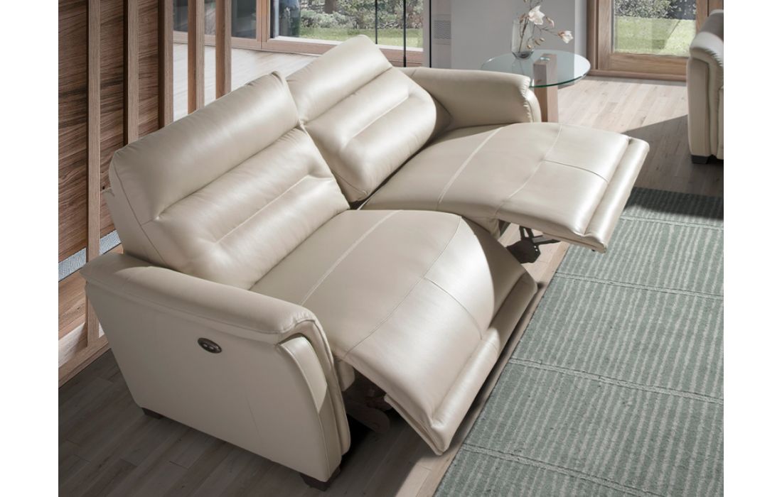 3-seater sofa with modern design upholstered in cognac brown leather. Its reclining seats in the back and footrest provide that extra comfort you need to enjoy your moment of tranquility. A sofa with a unique, minimalist style, with a robust internal structure in natural pine wood and seats with electric relaxation mechanisms. The perfect combination of design, elegance and comfort.