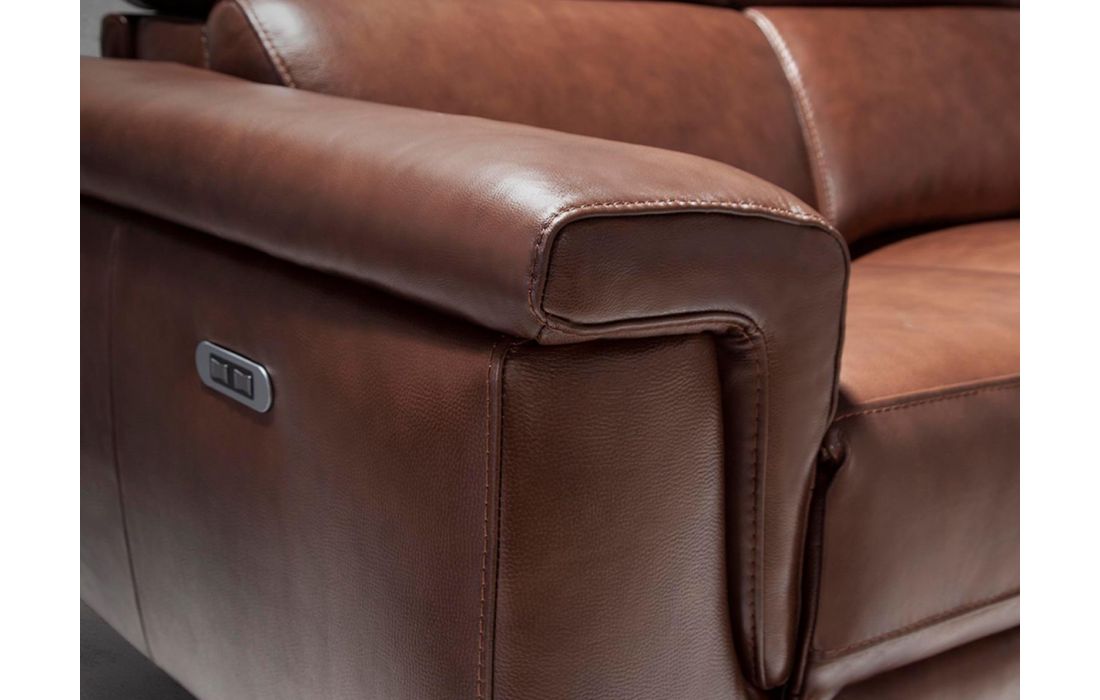 Relaxing sofa with a modern design, upholstered in cowhide, with a headrest for greater comfort and stainless steel legs. Its two electric relaxation systems provide the extra comfort you need to relaxRecipient :