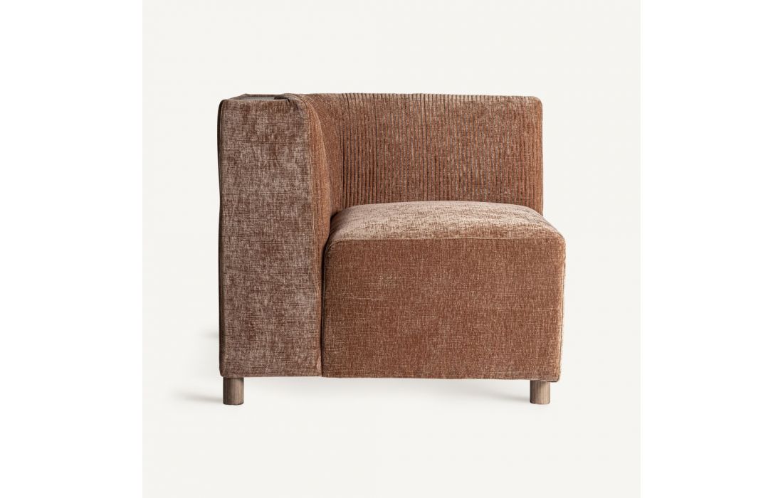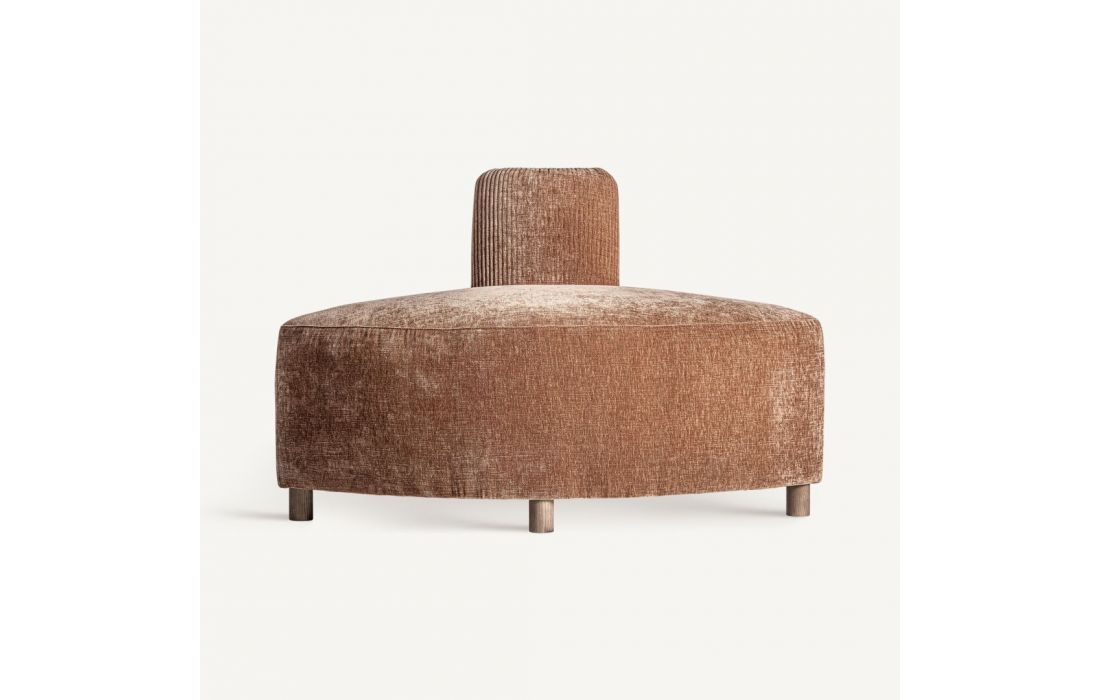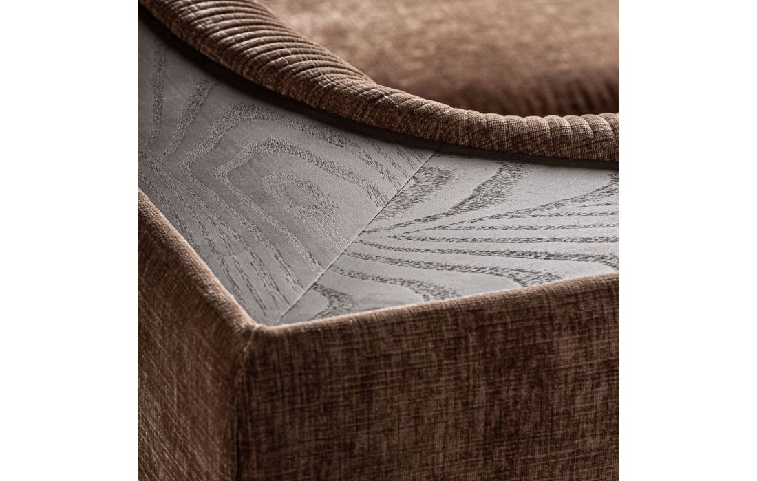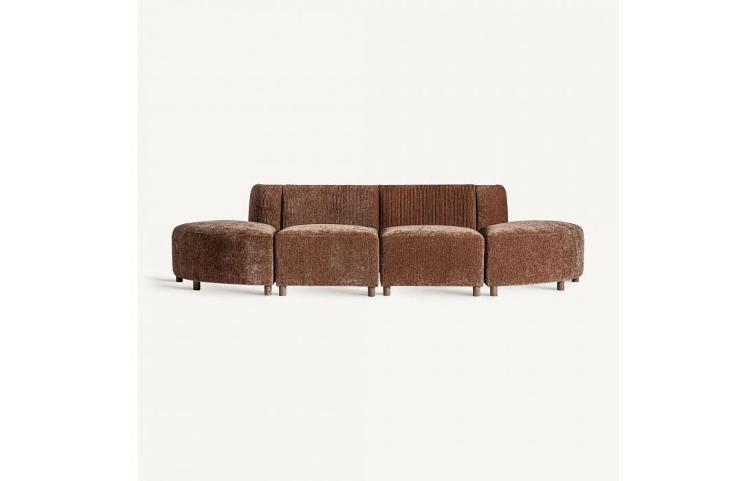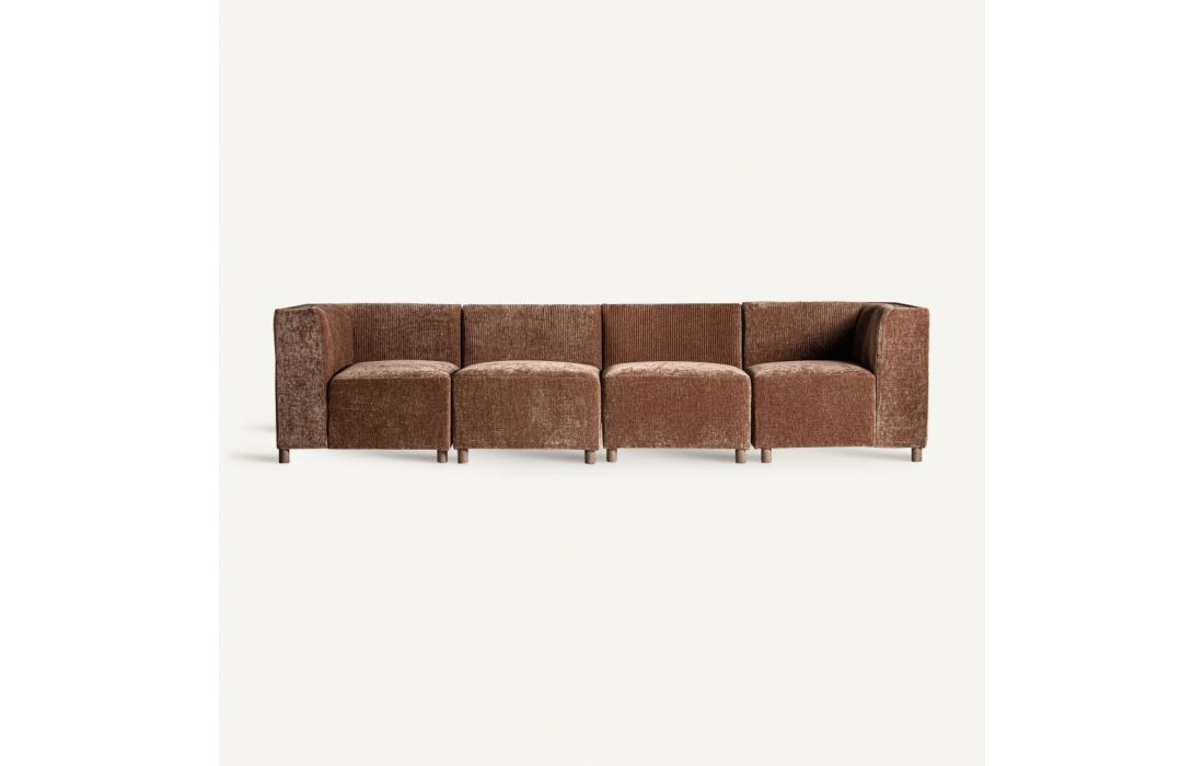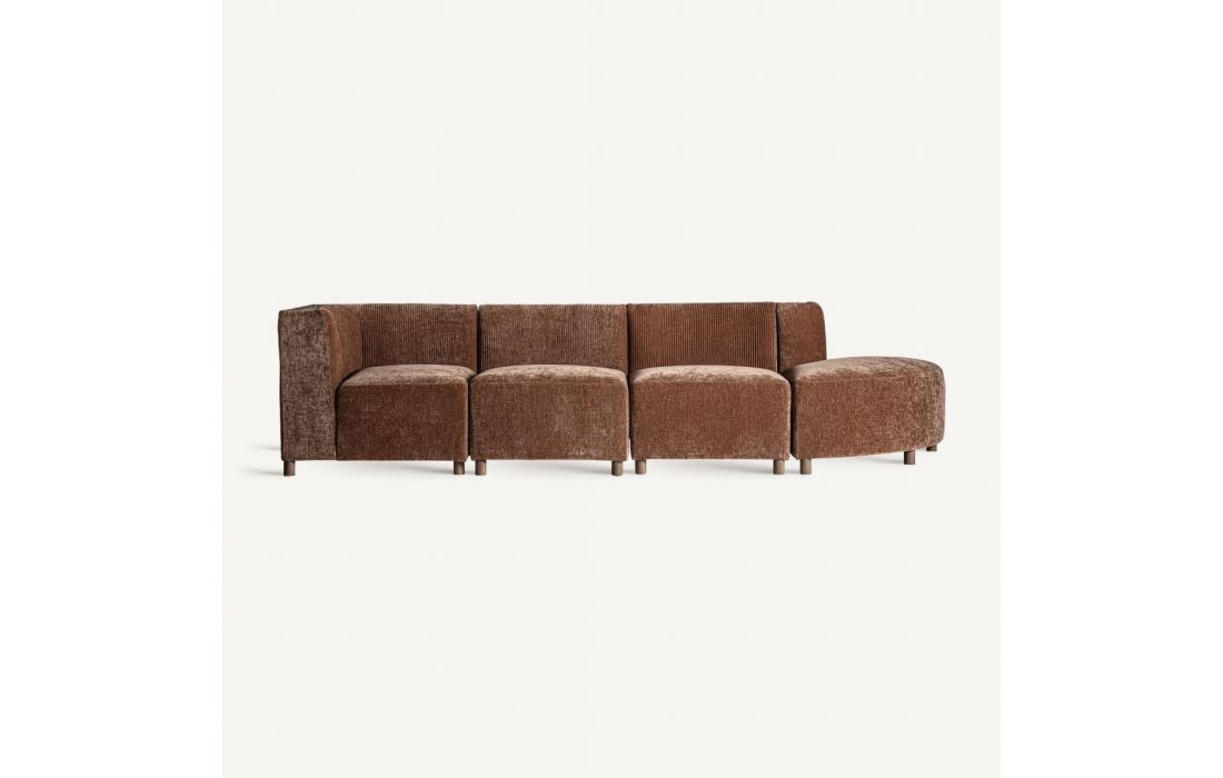 Modules with a symmetrical version that maintains the enveloping aesthetic and the brown polyester upholstery and pine wood structureRecipient :