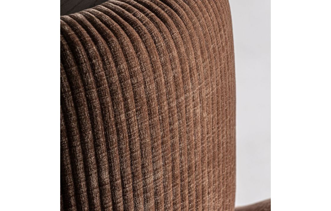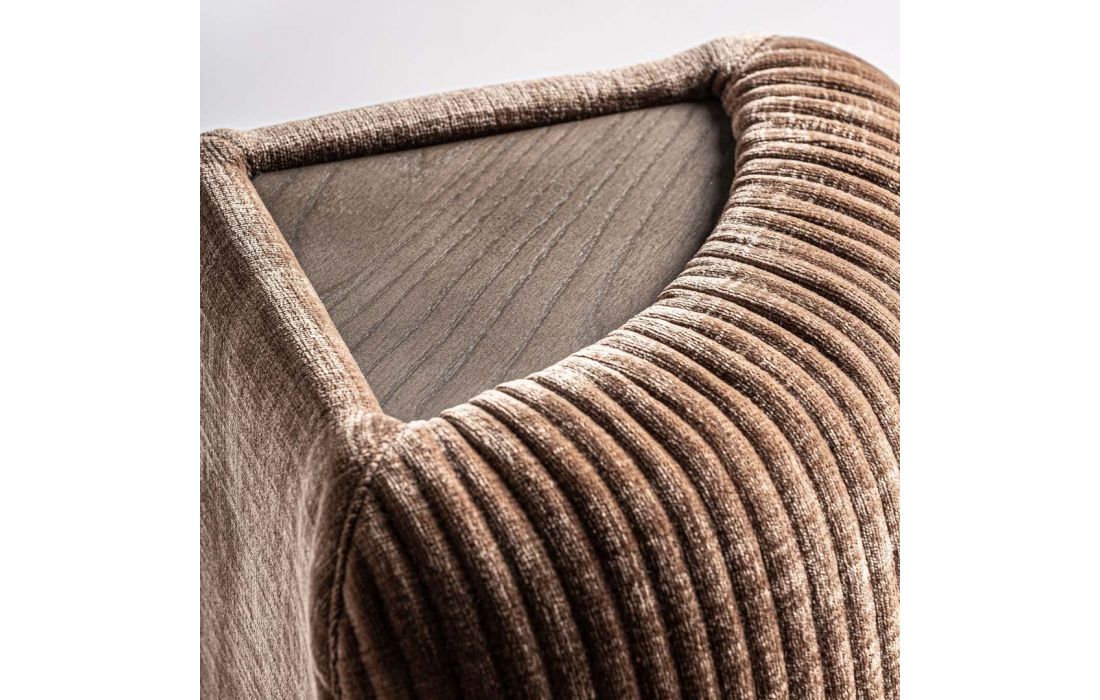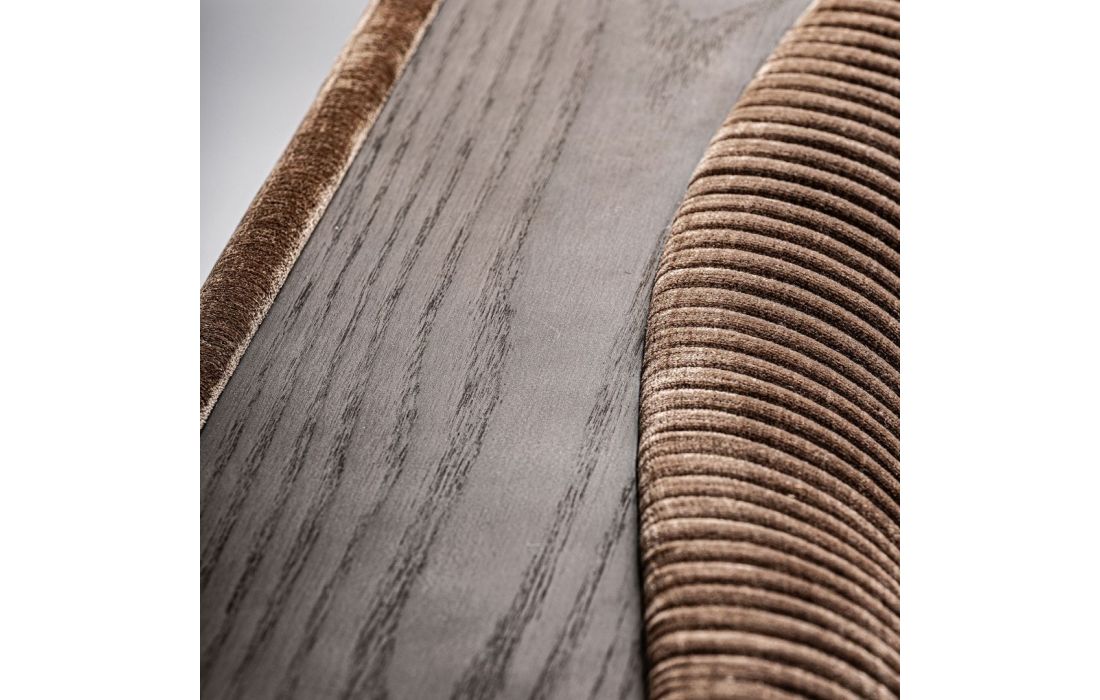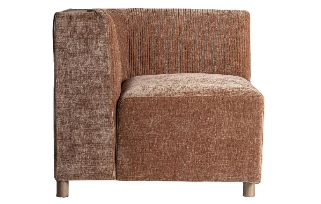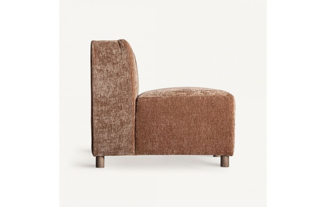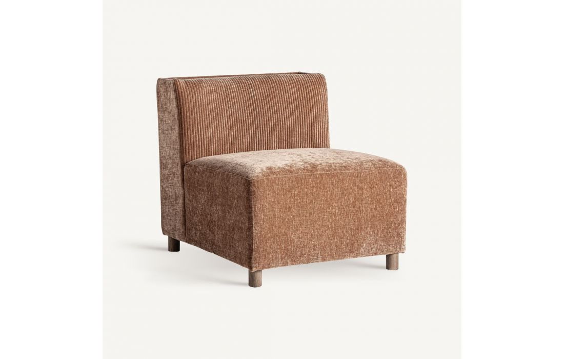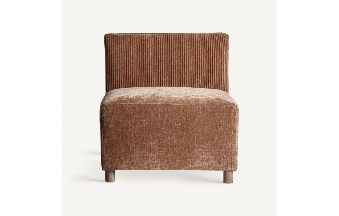 Modules with a symmetrical version that maintains the enveloping aesthetic and the brown polyester upholstery and pine wood structureRecipient :