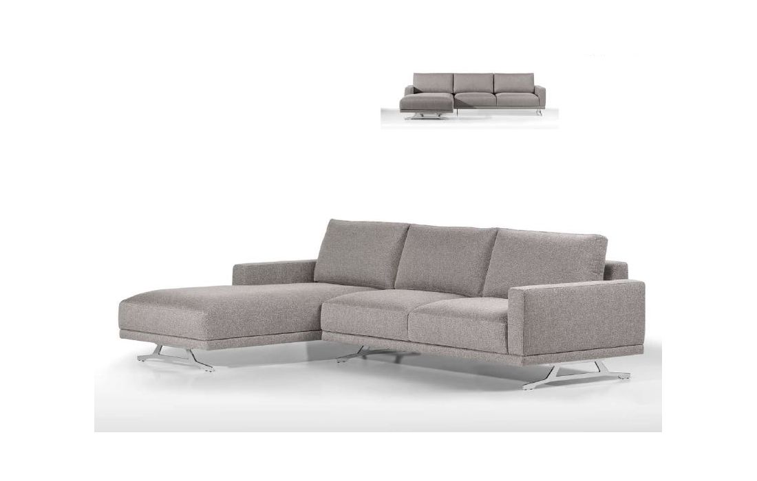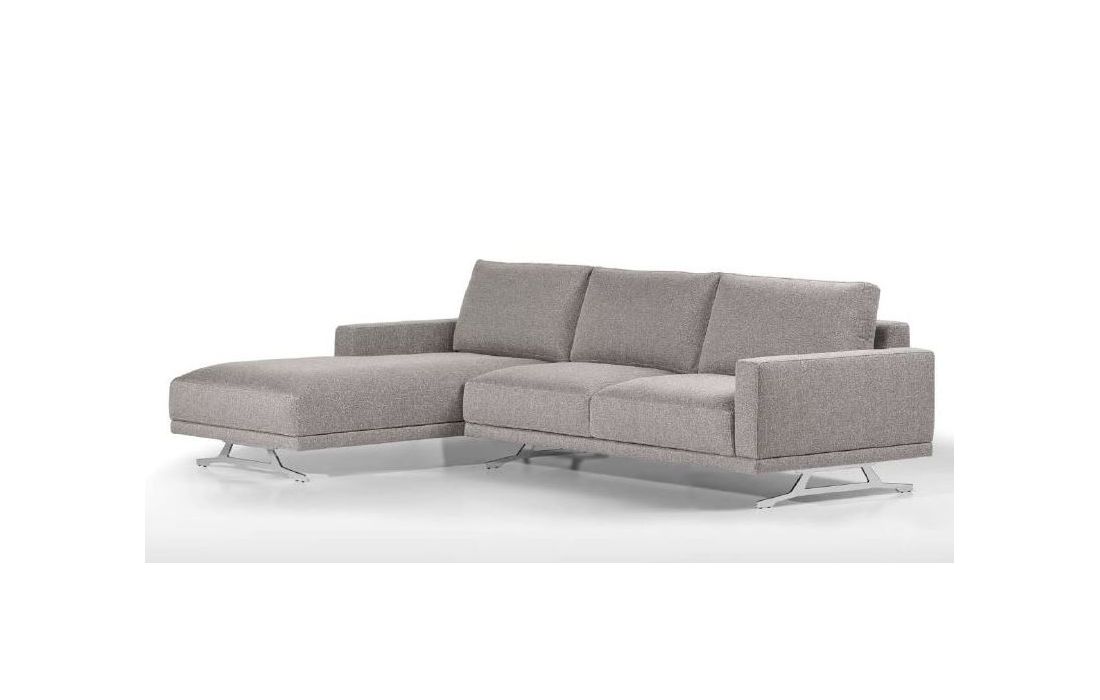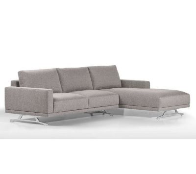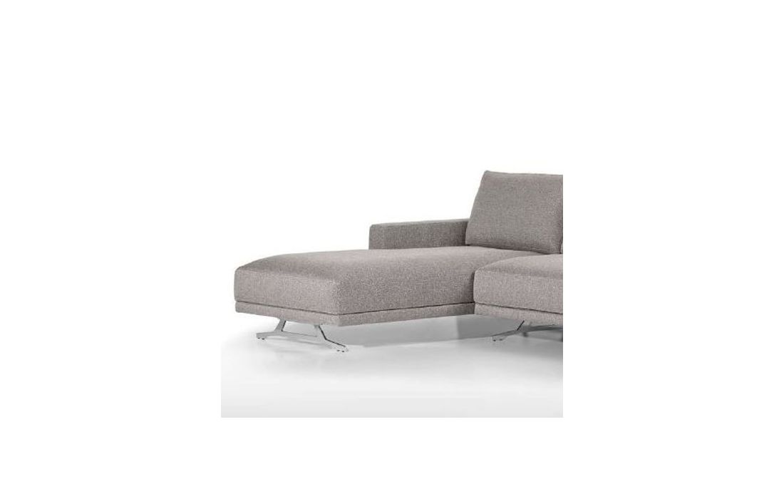 Sofa with chaiselong in genuine fabric or leather and stainless steel feet