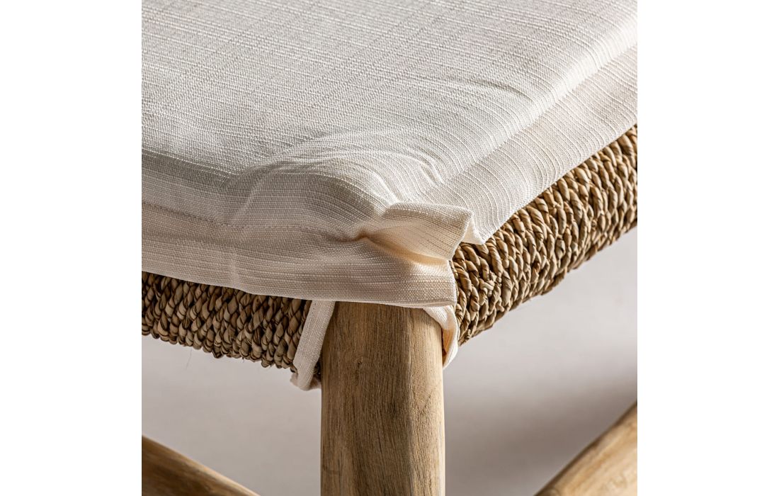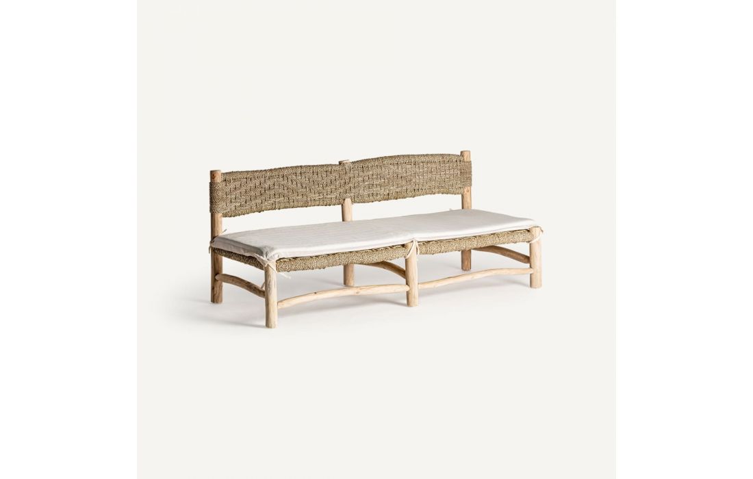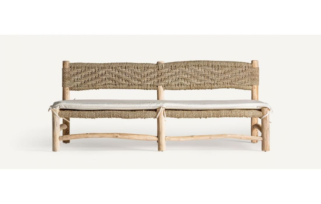 Bench with teak wood frame and natural fiber fabric upholstery.Recipient :