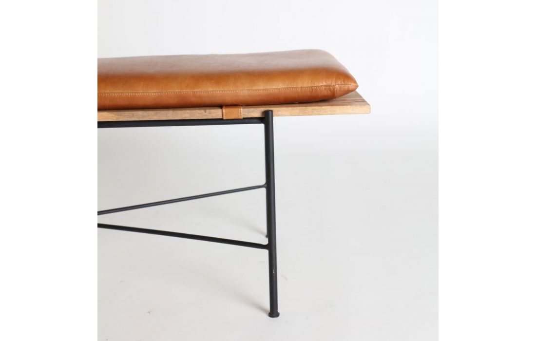 Industrial style bank made of iron combined with leather and mango wood in brown colorRecipient :