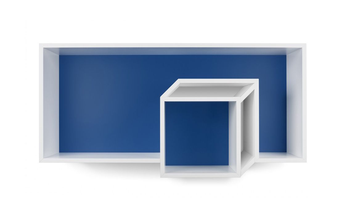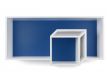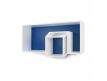Suspended module in which stands out the illusion of a 3D cubic shape and the dark blue detail of its background.