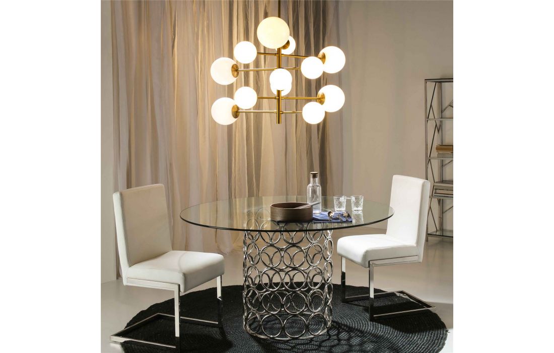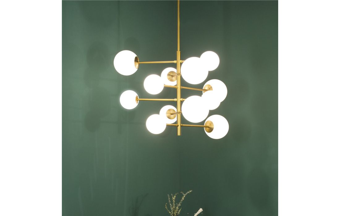 Ceiling lamp made of glass and golden metal.