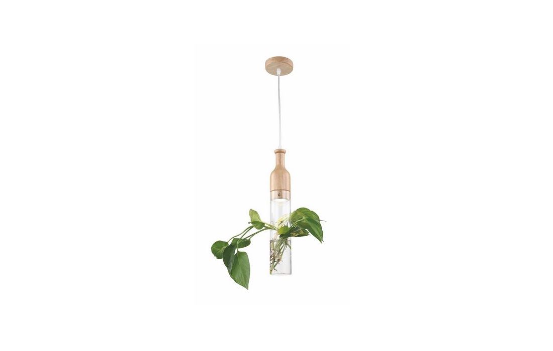Ceiling lamp made of wood and glass