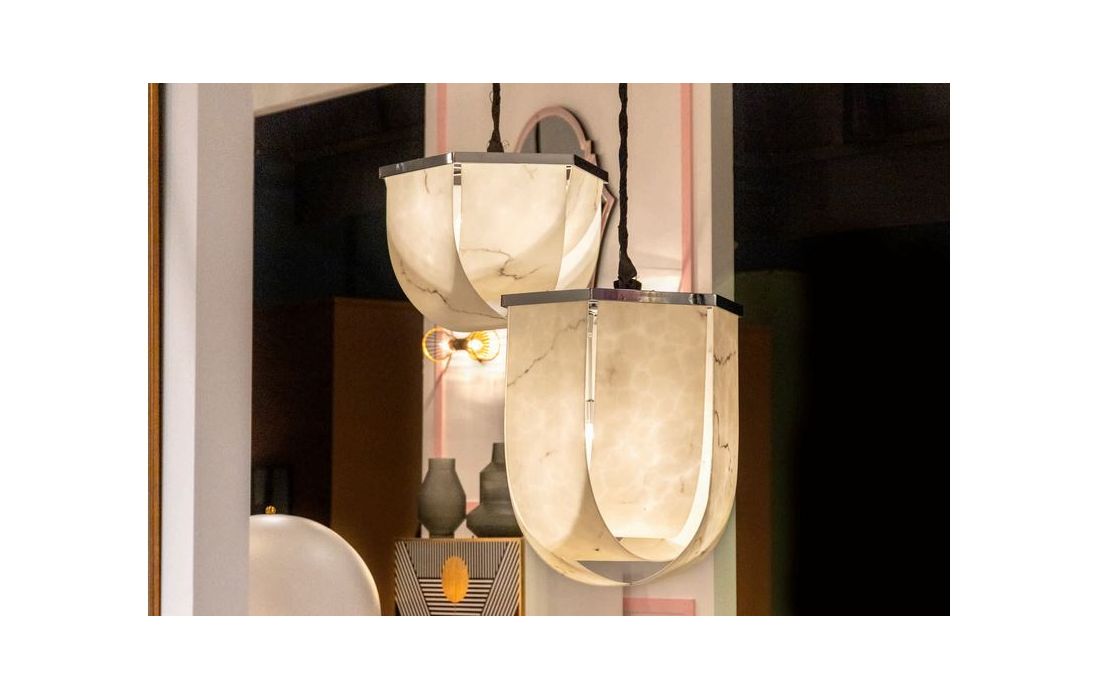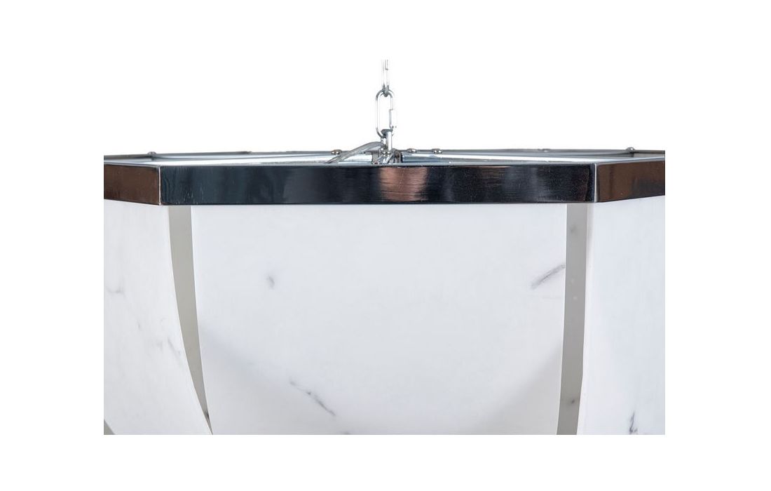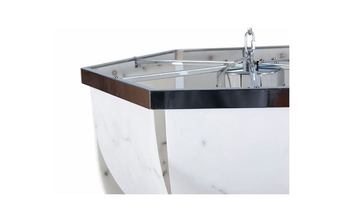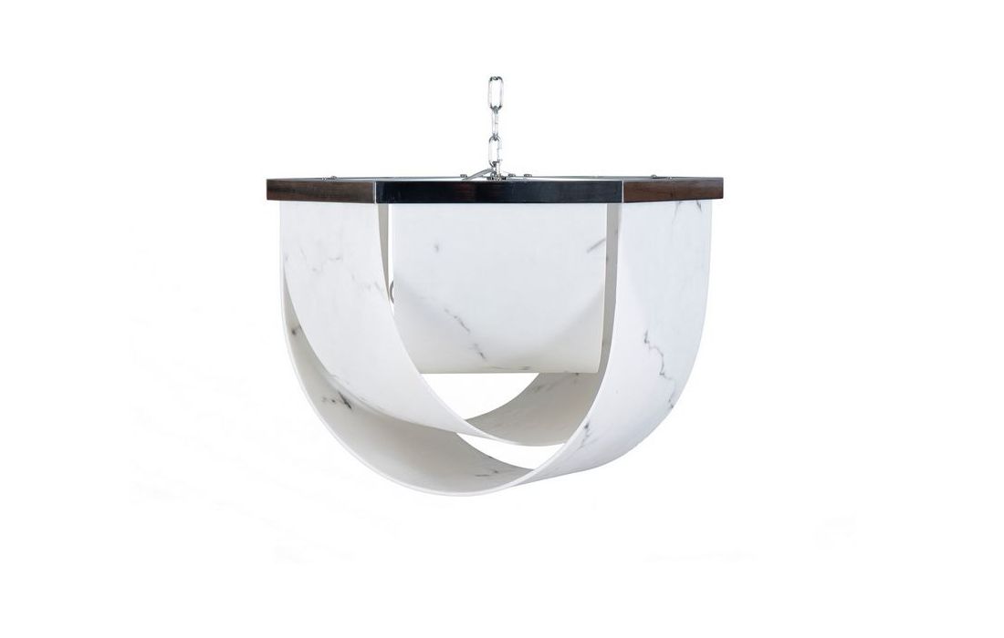 Ceiling lamp made of chromed iron and white and black polyresin