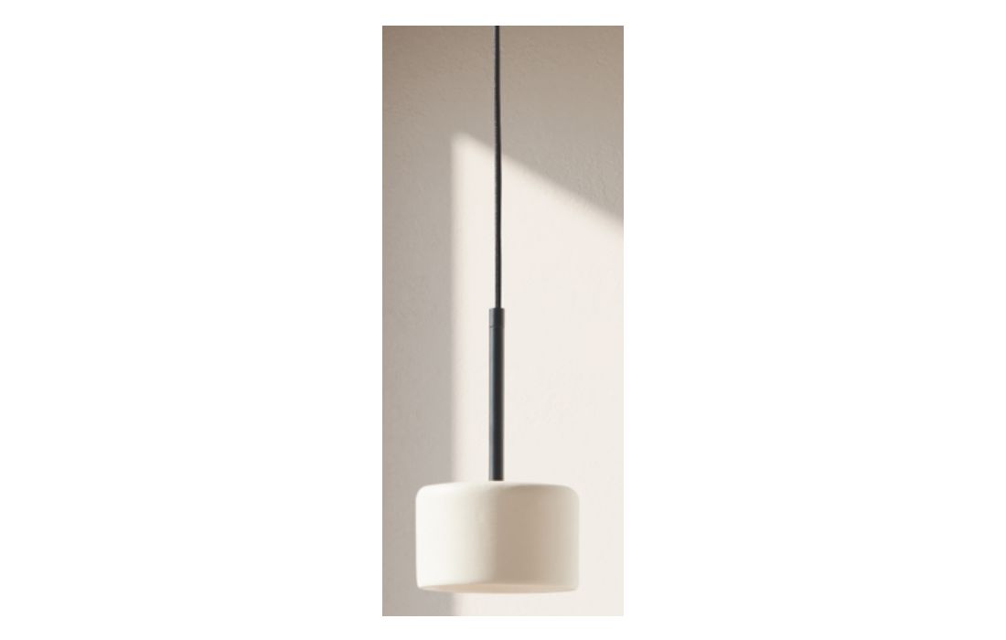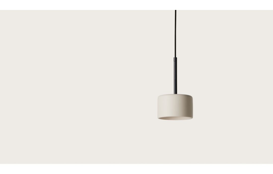 Suspended ceiling lamp made of metal available in gold, white or black, with ceramic lampshade.