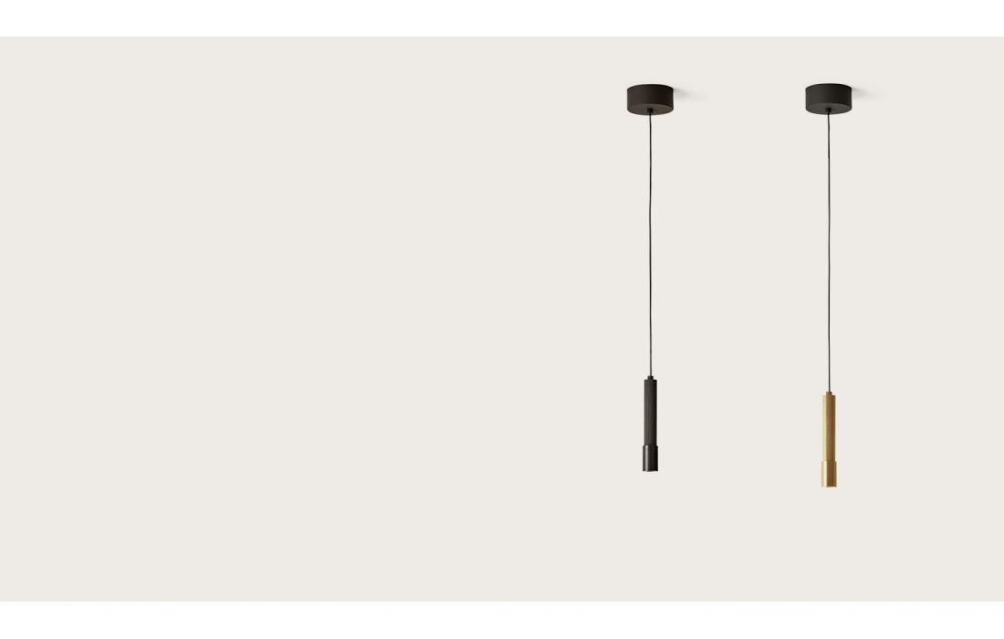 Steel and metal lamp available in matt black and matt gold.