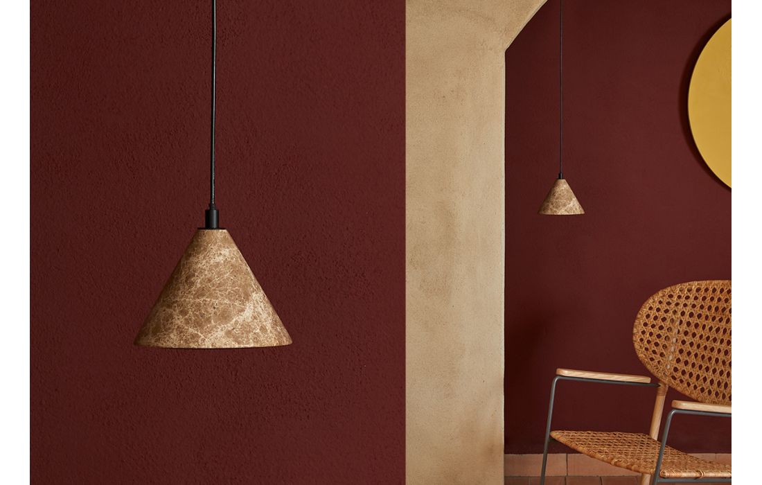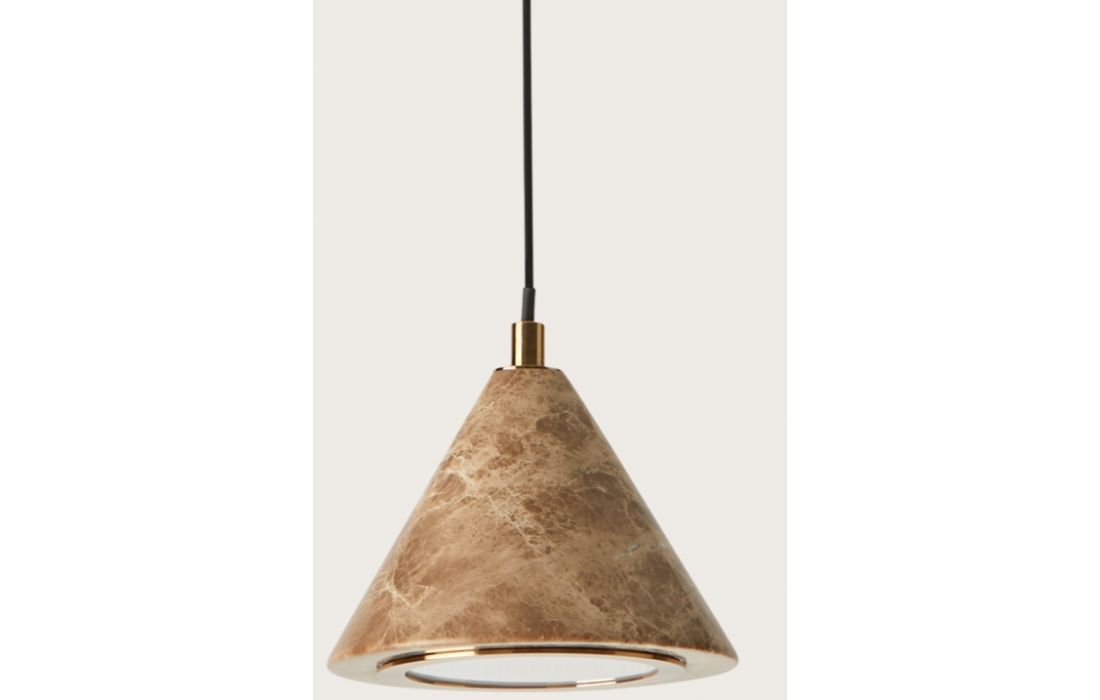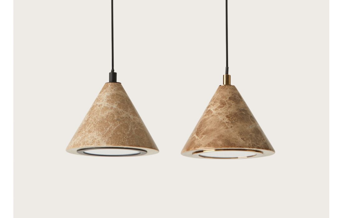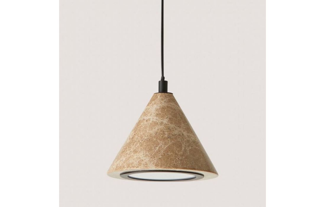 Suspension lamp with marble as the main protagonist. Black metal base. Detail in the lampshade area to choose between gold or black. (regulavel )