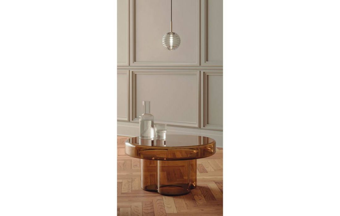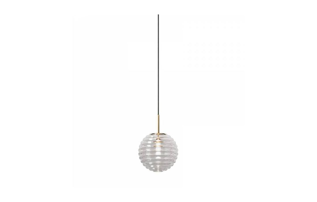 Suspended lamp with a minimalist design, very elegant and designed to give a special touch to any corner of the house. With a base and detail in matt gold or matt black steel and a spherical striped glass lampshade, it is exquisitely crafted, creating an effect that will brighten your room. cozy space.