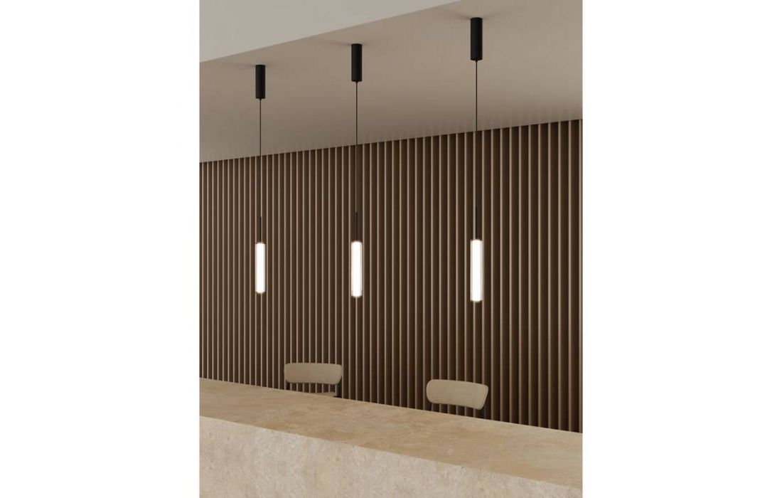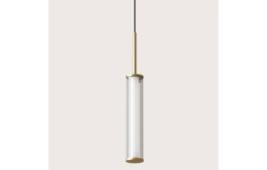 Individually designed pendant lamp. This version retains all the features that made it such a hit with architects and interior designers. Made in matte gold or matte black metal. Faceted glass diffuser.