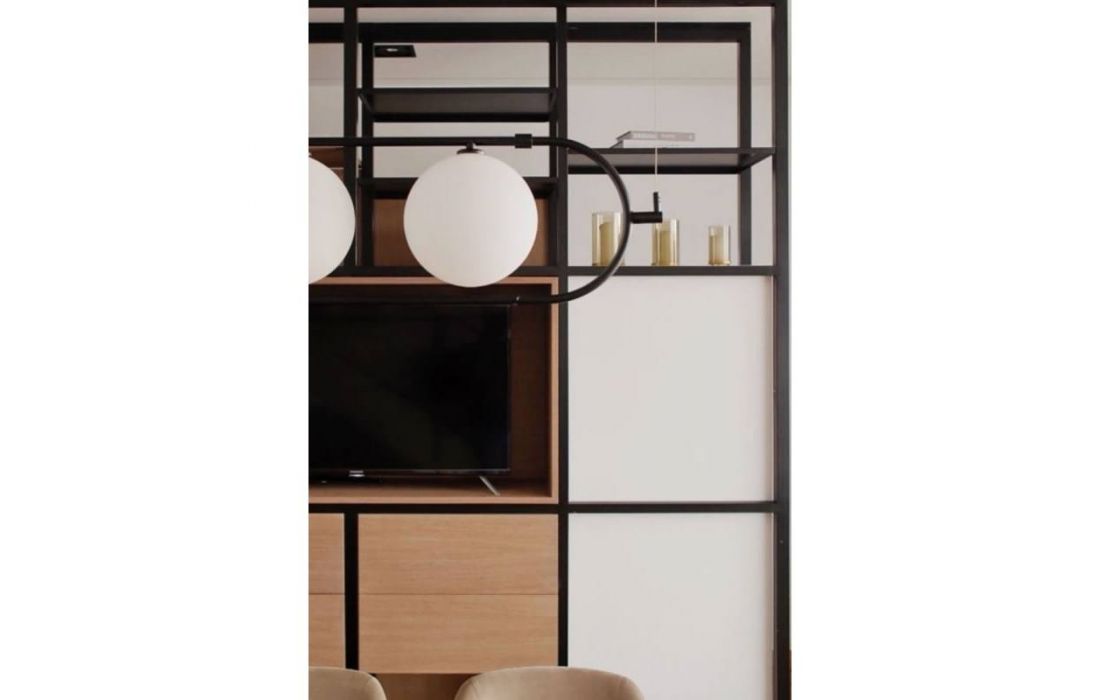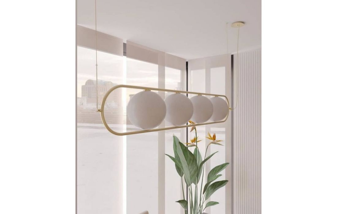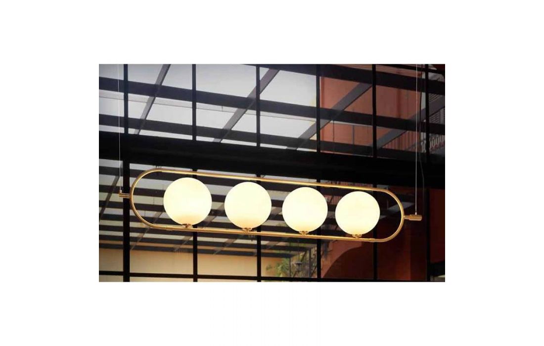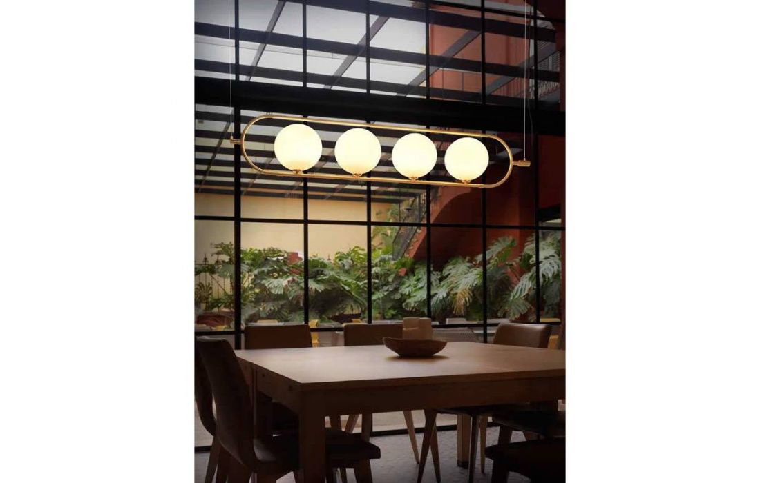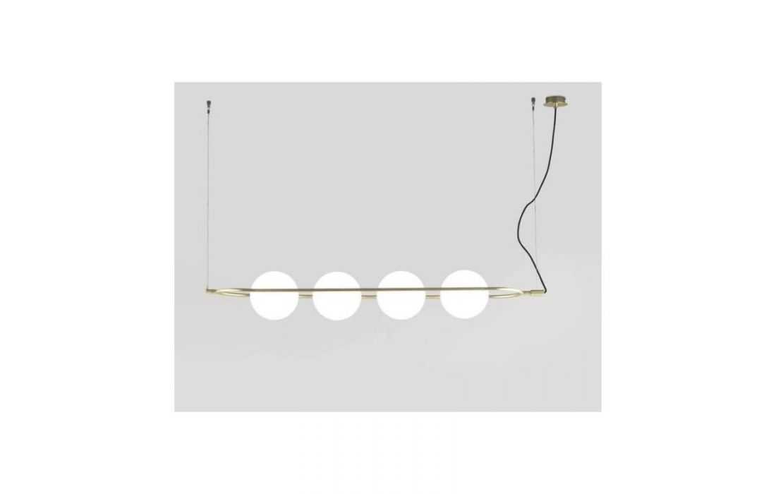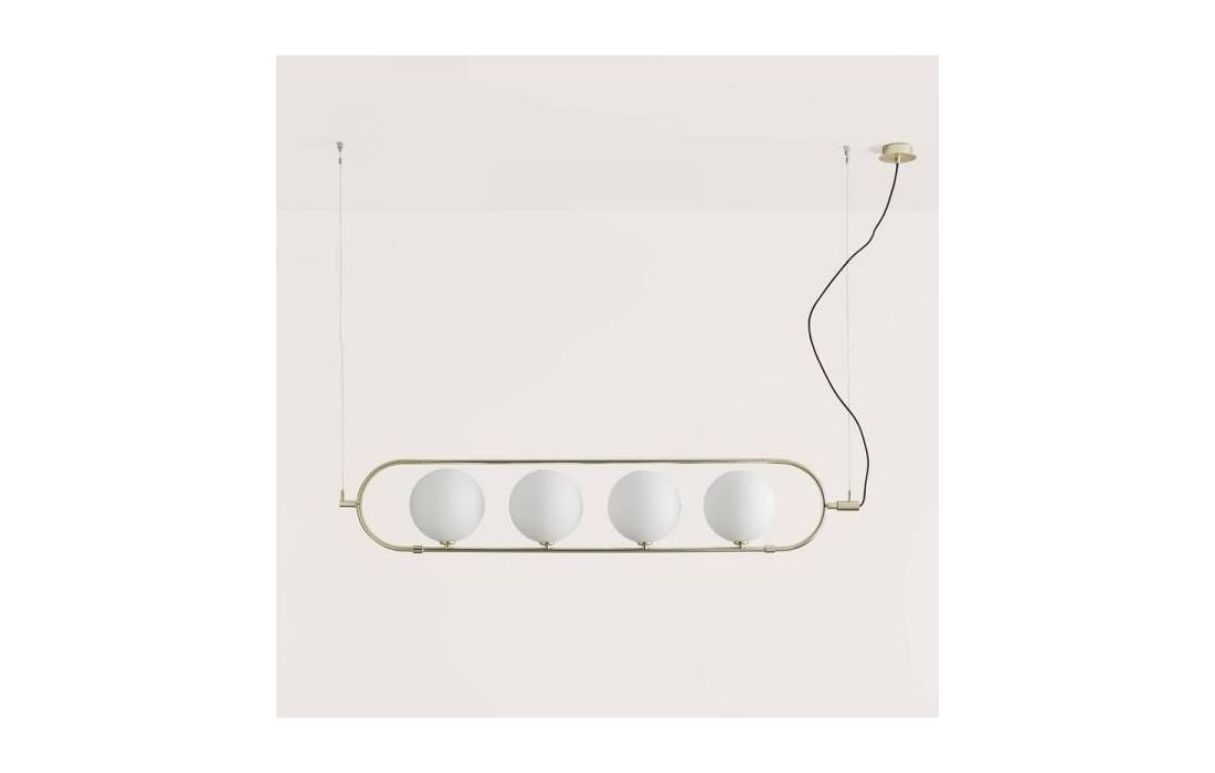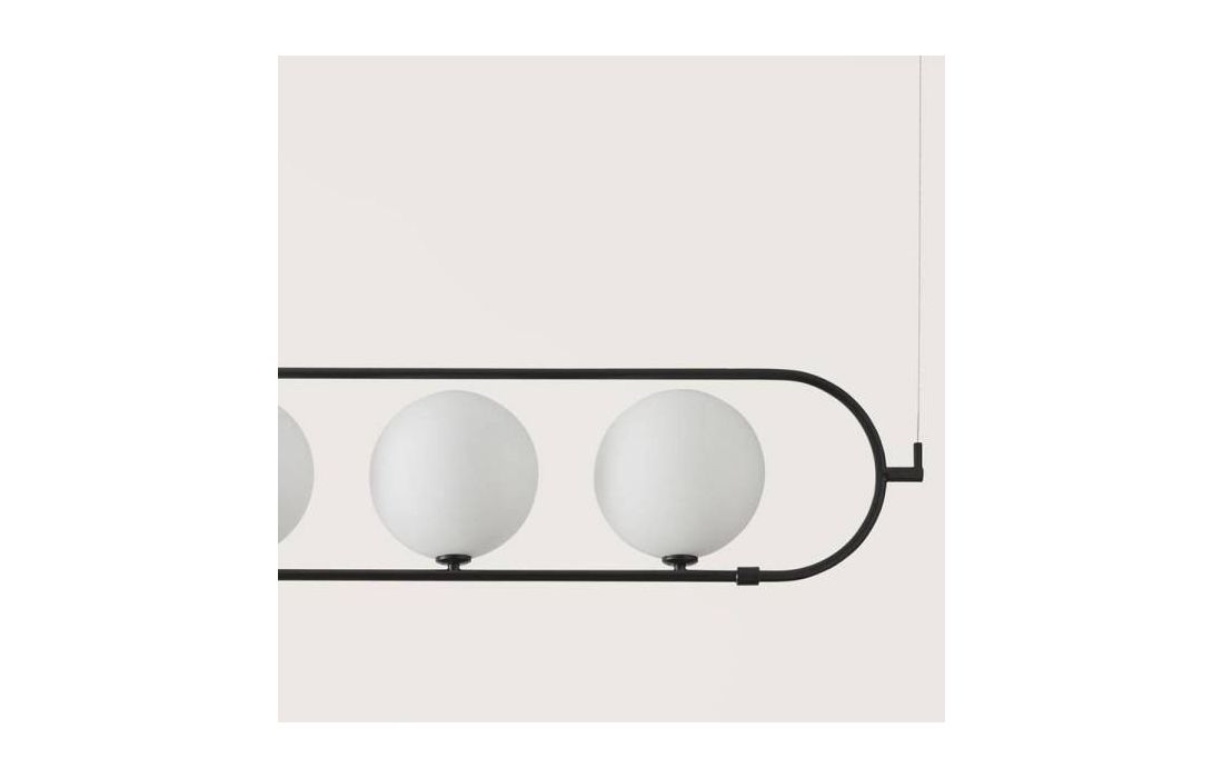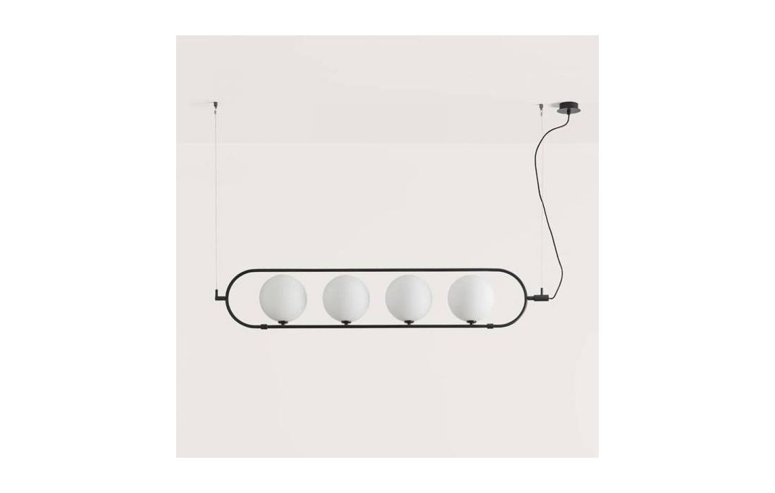 Abbacus pendant lamp stands out for its curved metal structure and spherical glass lampshades that diffuse light in a pleasant way. A perfect hanging lamp for dining rooms and tables. With a steel structure that rotates on its axis to adapt to our needs.