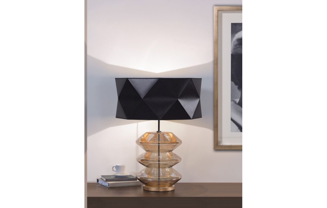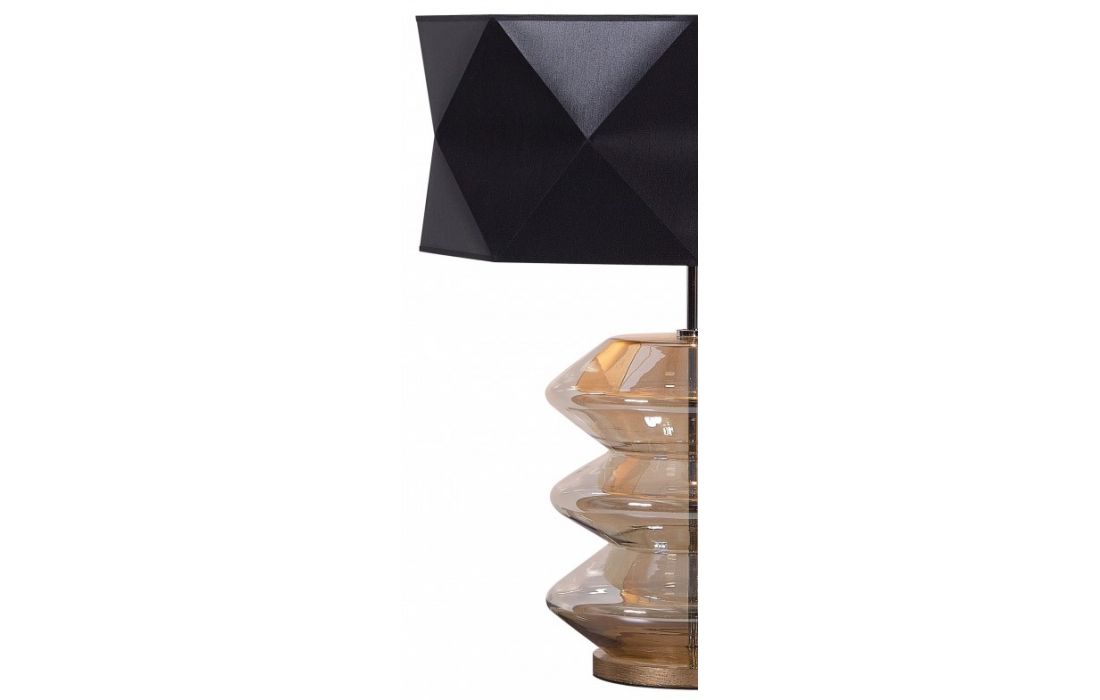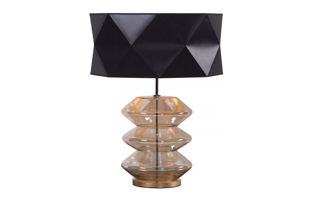 Table lamp with light tone foot and glass work makes it different, along with its worked abat-jour and the dark tone make this piece unique.