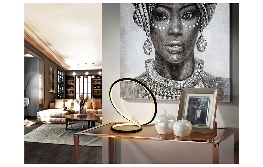 Aluminum table lamp with sanded matt black finish. Opal silicone diffuser