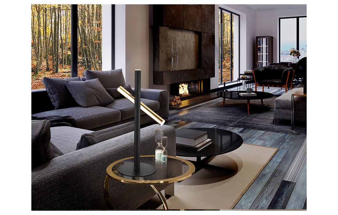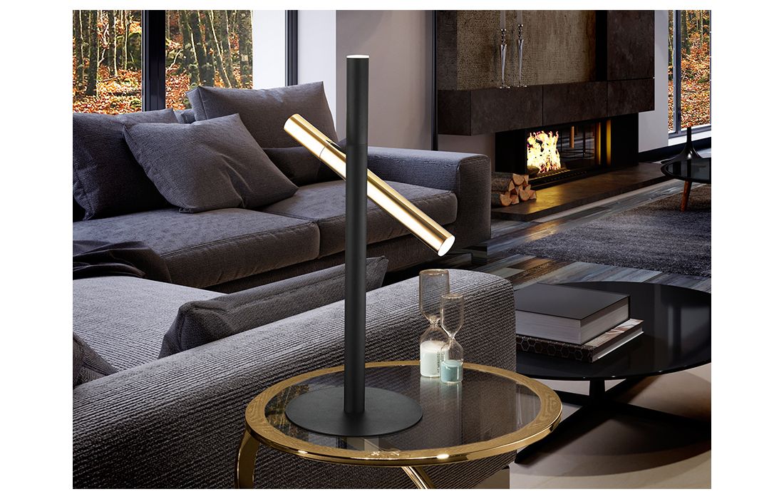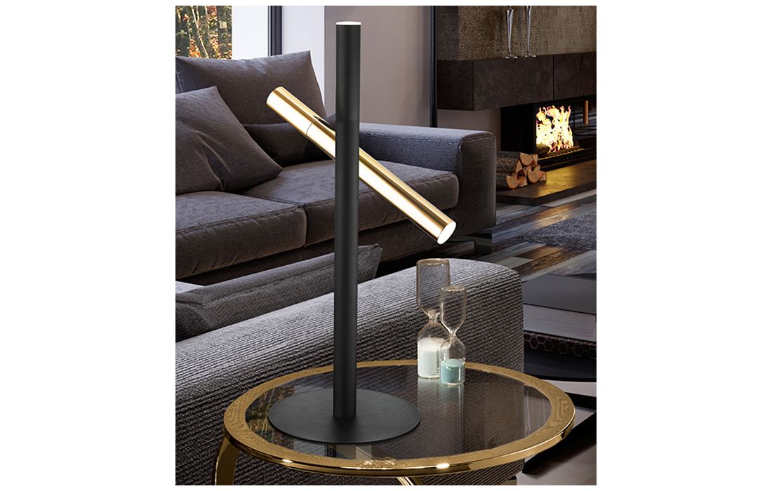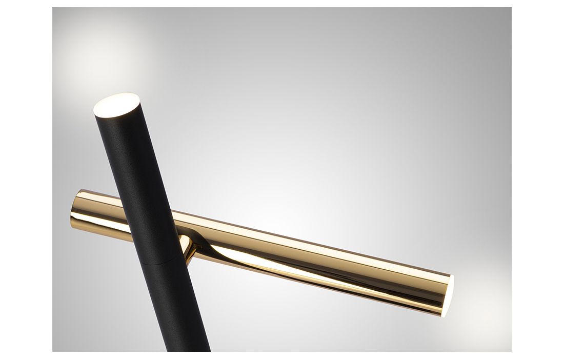 2-Led metal table lamp with gloss gold finish and matt black. Opaline acrylic diffuser