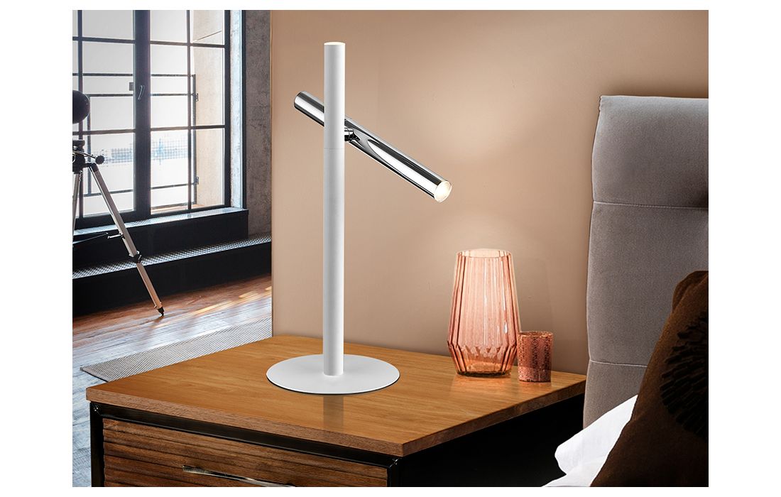 2-Led metal table lamp with chrome finish and matt white. Opaline acrylic diffuser