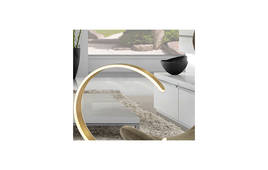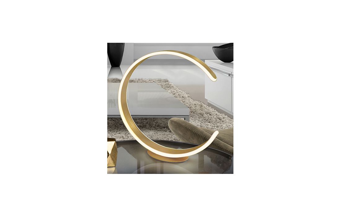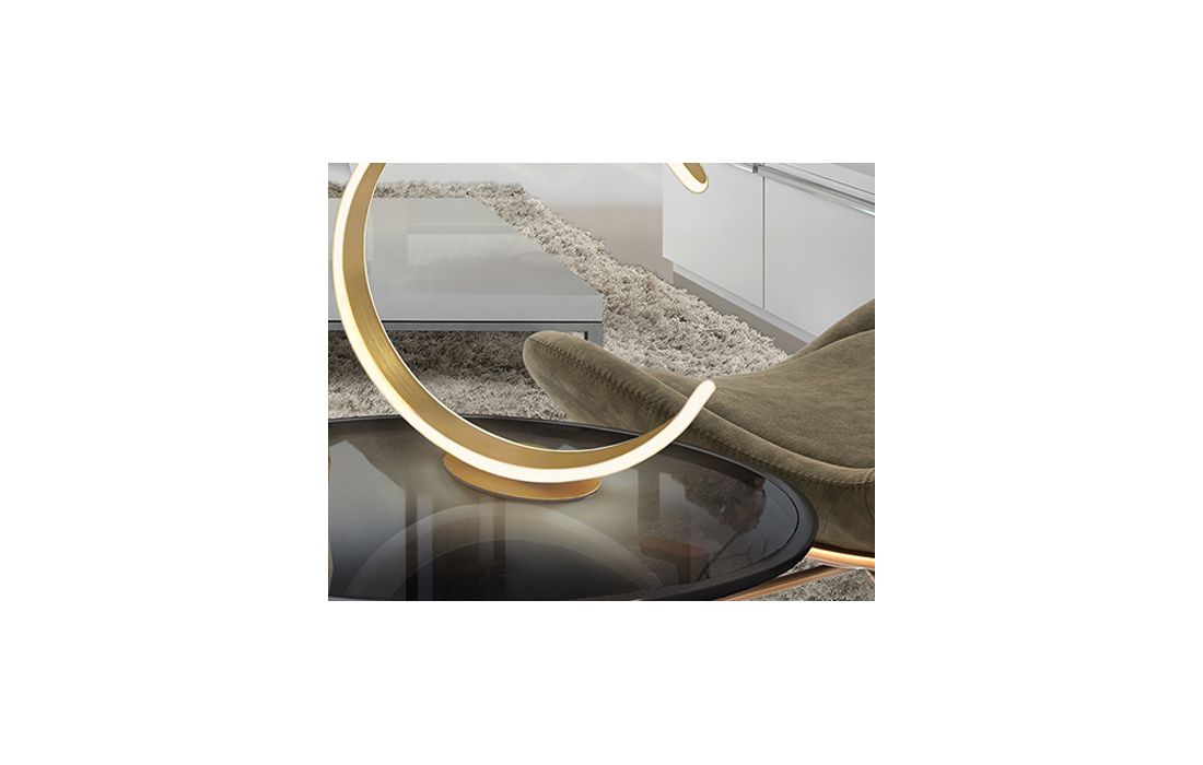 Table lamp in brushed aluminum and steel with matt gold finish. Opal silicone diffuser