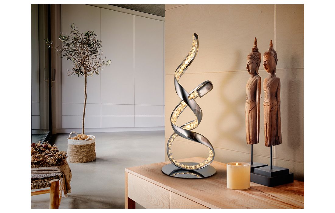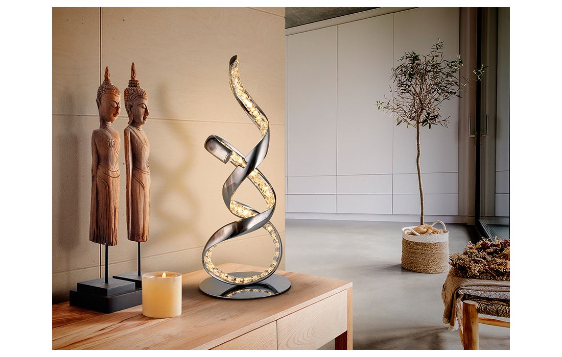 Table lamp in ABS and black rubber, leather texture, flexible arm, adjustable intensity and VA screen with clock, alarm, calendar and thermometer